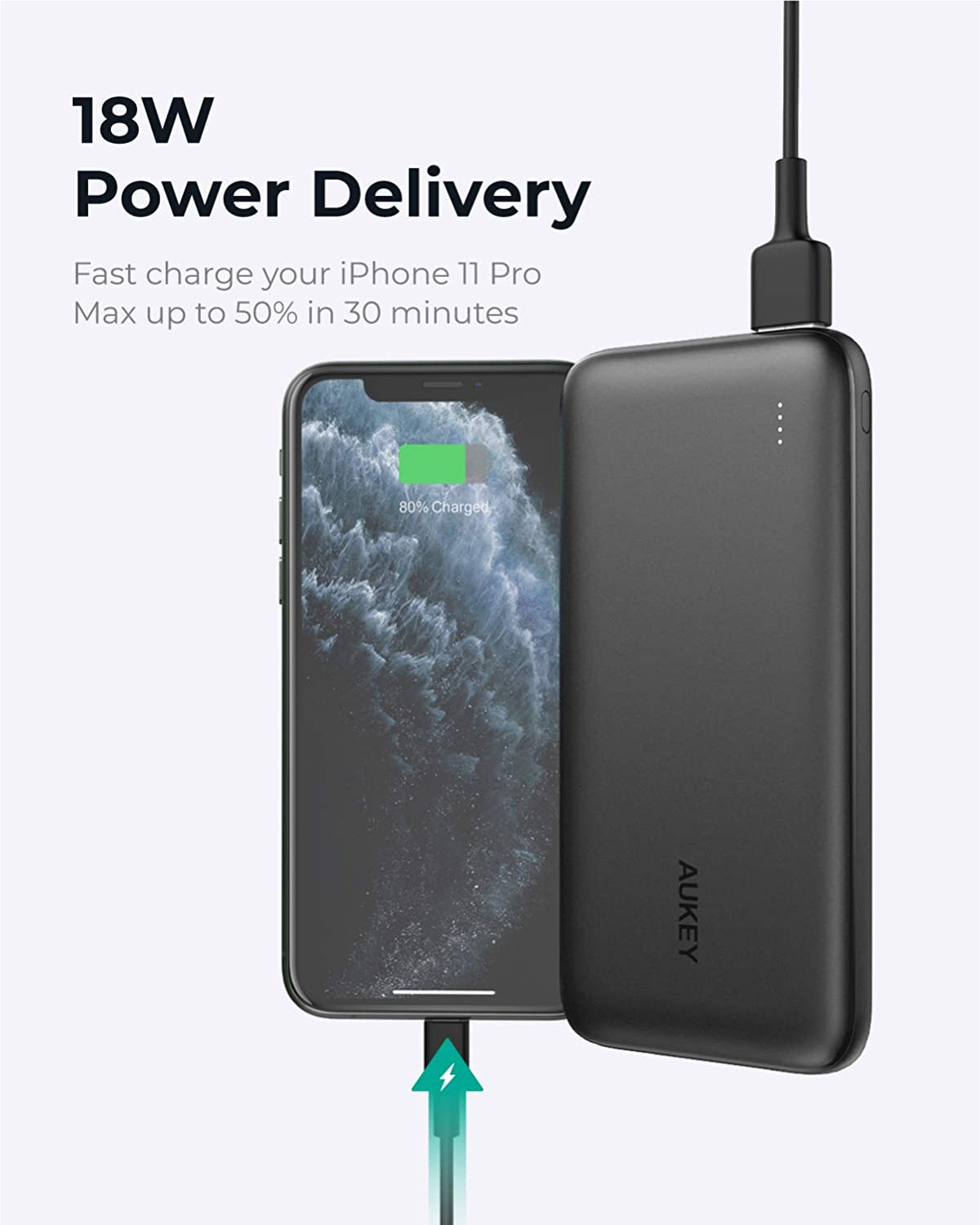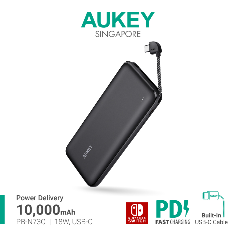 Aukey PB-N73/PB-N73S/PB-N73C Ultra Thin Portable Charger 10000mAH 3-Port USB C PD 12W / 18W Fast Charge Power Bank (18 Months Warranty)