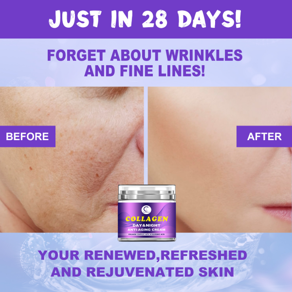 Our collagen day&night anti-aging cream Just in 28days! forget about wrinkles and fine lines!collacen will renew ,refresh and rejuvenat your skin!