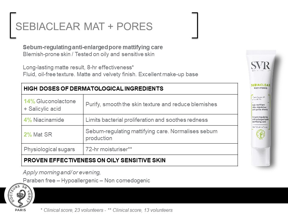 SVR SEBIACLEAR Mat+Pores Mattifying Pore Refiner Cream 40ml - Sebum-Regulating Mattifying Enlarged Pore Treatment. For Combination and Oily Skin even Sensitive Skin