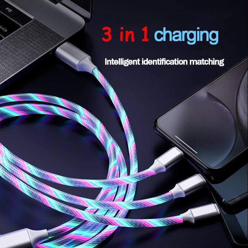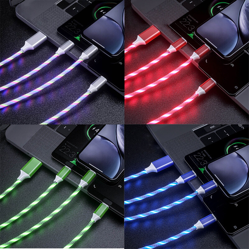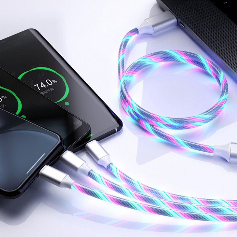 3 dalam 1 kabel USB Triple LED lampu pelbagai kabel pengecas mikro USB jenis C mengecas wayar untuk Samsung Huawei Xiaomi Honor Kable