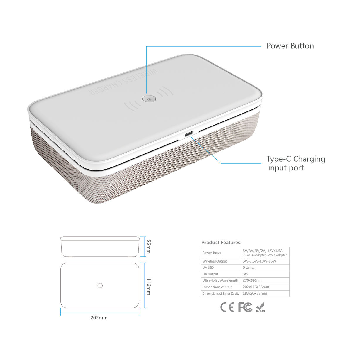 15W Wireless Fast Charging UV Sterilizer Box Disinfection Box
