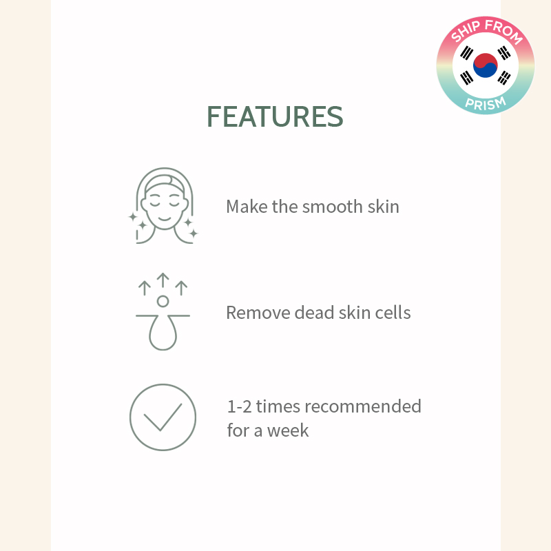 This is perfect for doubling skin exfoliation care as it combines the chemical peeling effect of green barley vinegar, glycolic acid and salicylic acid, and the physical peeling effect of natural cellulose.