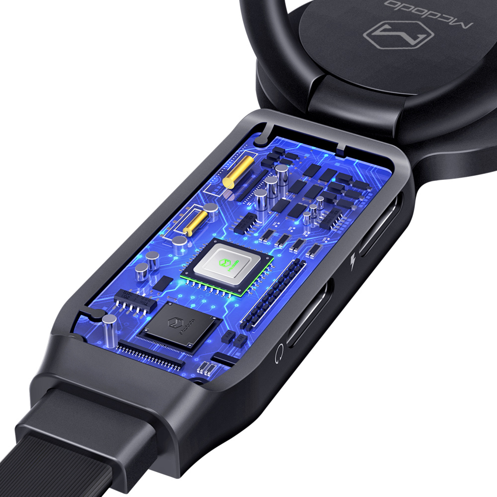 LED is Mcdodo logo with blue light, charging indicator makes the charging visible, also add the beauty.