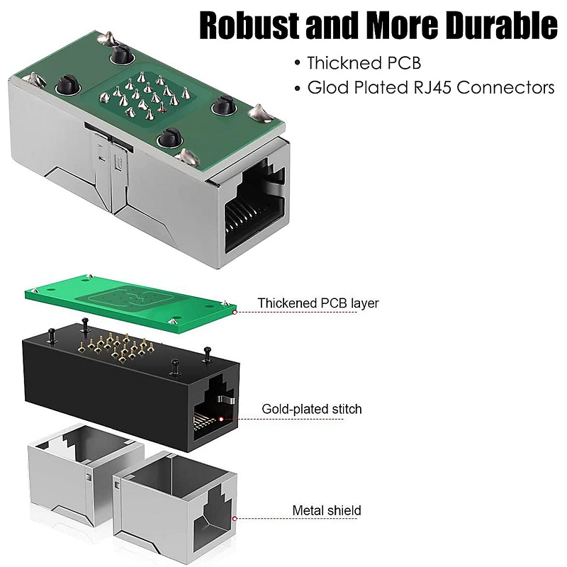 RJ45 Ethernet Network Lan Extender Adapter for Cat5 Cat5e Cat6e Cat7 Cable, Female to Female (Black)