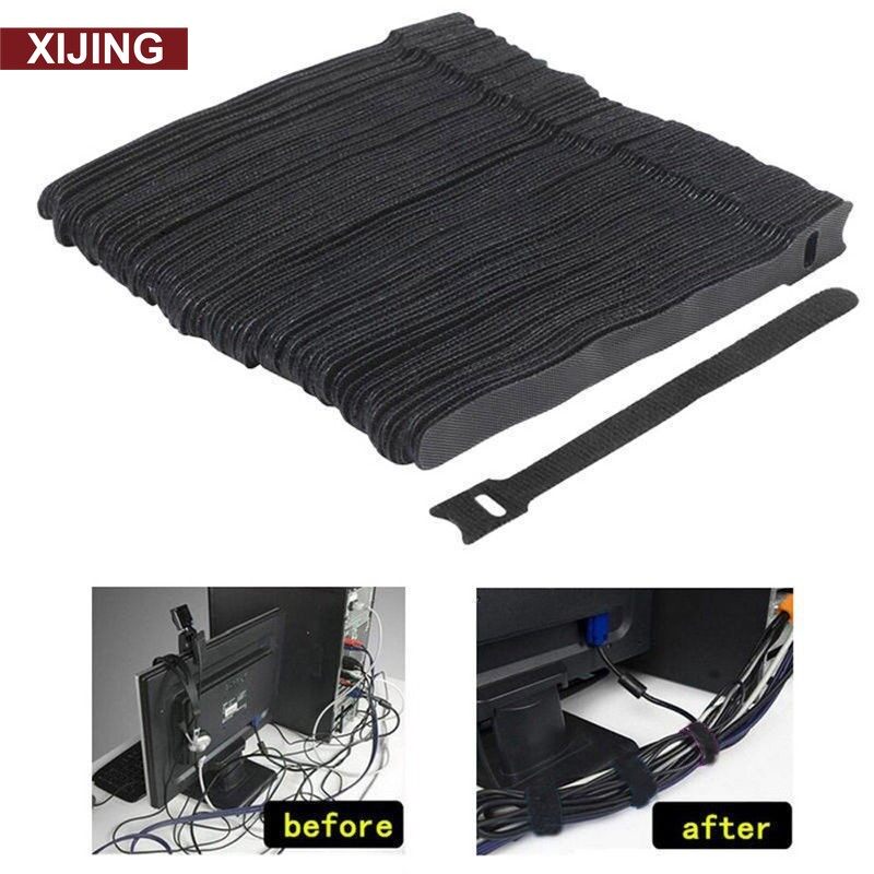 【happy-Store】50pcs Self-adhesive Fixed Velcro Tape Nylon Velcro Cable Tie Wire Reusable Hook and loop fastener Tape Velcro Strap Wire Ties