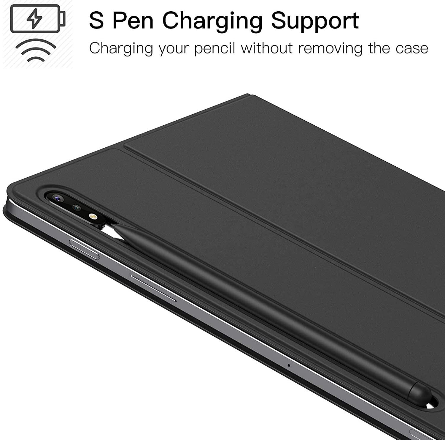 [Built-in pen holder] - Built-in pen holder, S Pen is easy to carry and can also be magnetically docked into it (S Pen is not included). [Shortcuts at your fingertips] - The Smart cover attaches magnetically to the back of the Samsung galaxy tablet to provide protection. Get rid of a traditional border while keeping the body slim and light. [Premium Material] - Soft microfiber lining with PU leather exterior, prevent your tablet from scratch. Ultra Slim PU cover protects your Samsung galaxy tablet [Stable stand] - Two practical stand angles for viewing photos and tablet to enter or view something. The Samsung tablet wakes up or sleeps when you open or close its case. [Package content ] -1 x Magnetic Smart Case Only (Tablet and Pencil Not include)