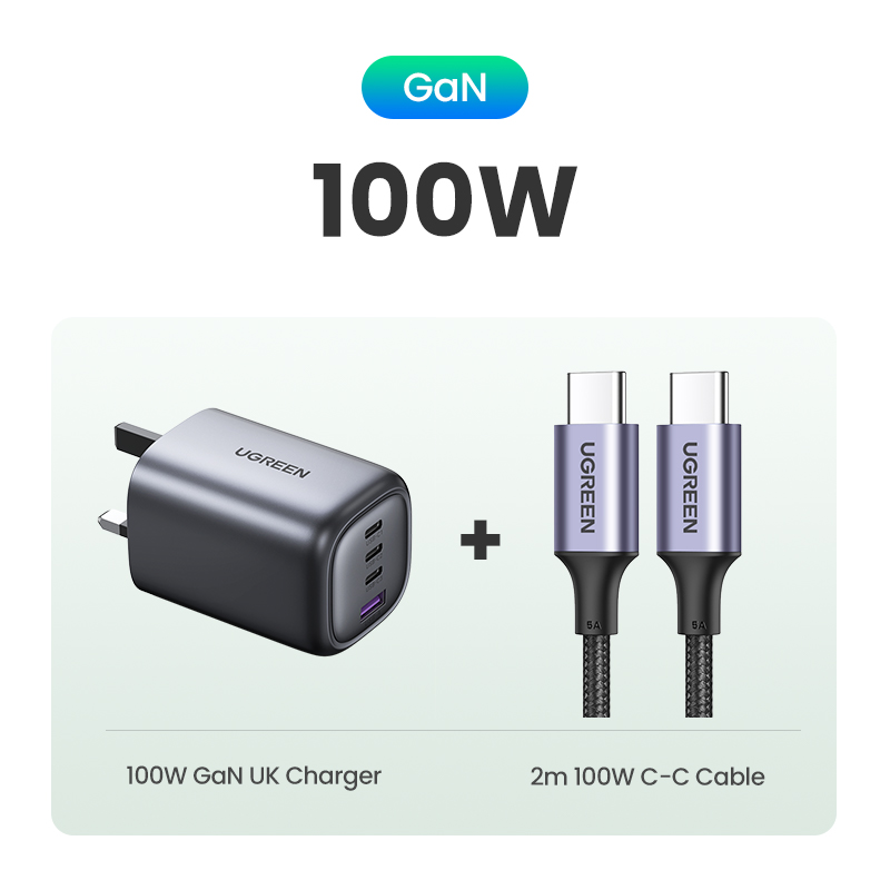 UGREEN 100W GaN 4-Port Fast Charger 3C1A 3 Type C 1 USB A Charger for MacBook Pro/Air, Dell XPS, iPad Mini/Pro iPhone 14 13 Pro Max iPhone 14 Plus Samng Galaxy S22 Ultra S21, Pixel, and More(Safety Ma