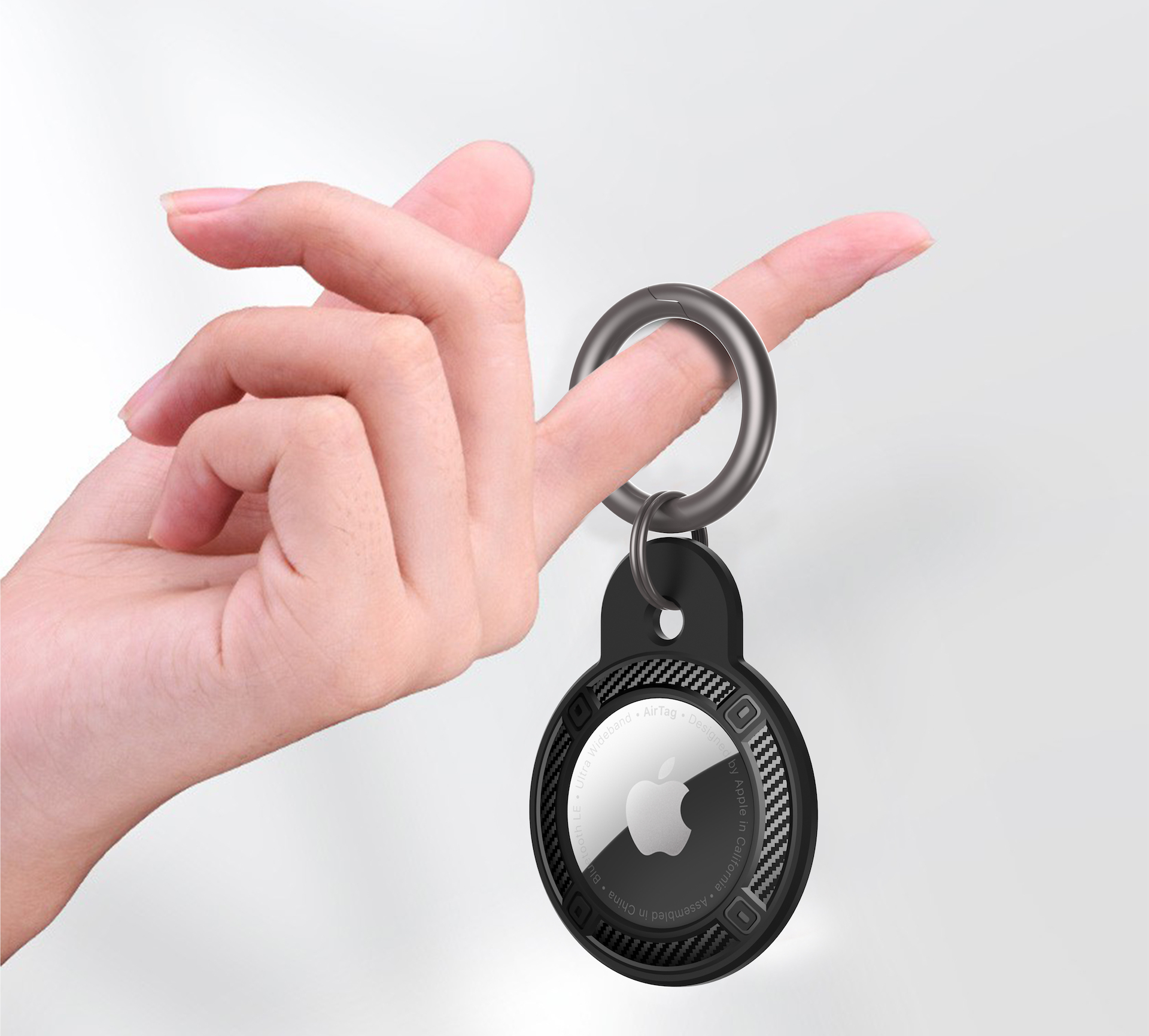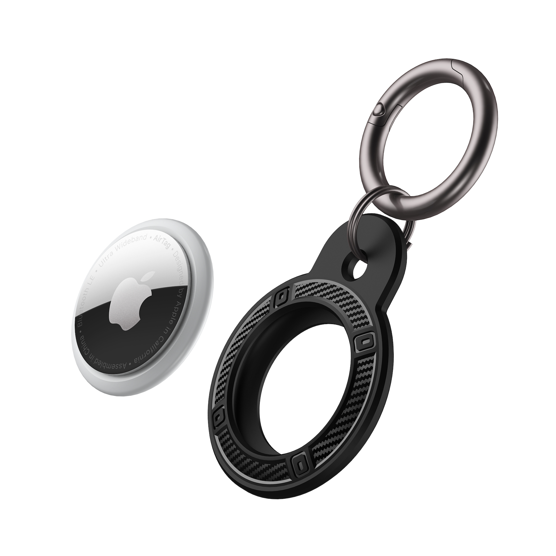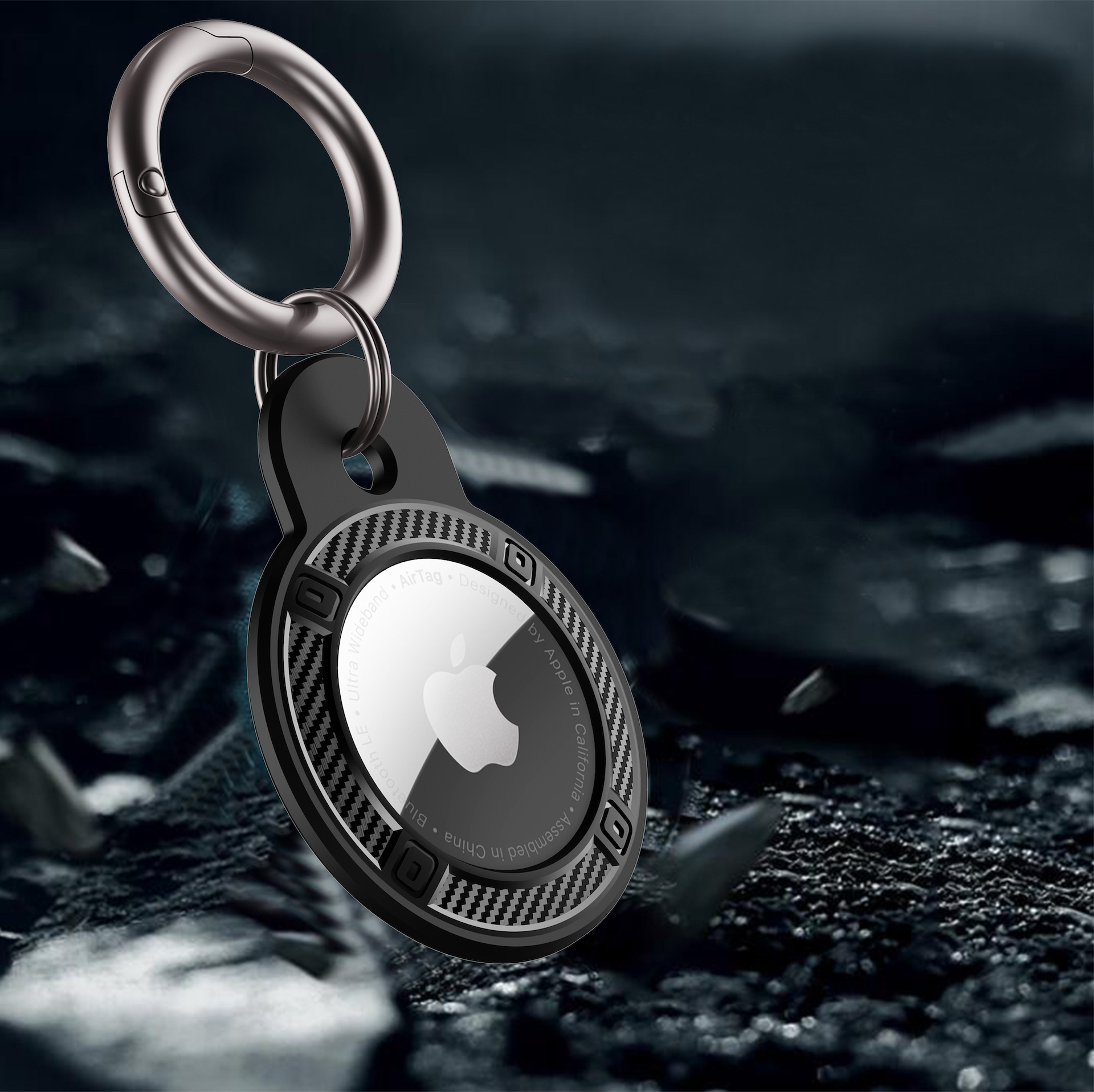 AhaStyle Air Tag Case, Rugged Carbon Fiber Texture Shockproof Case Cover Holder for Apple AirTag with KeyRing