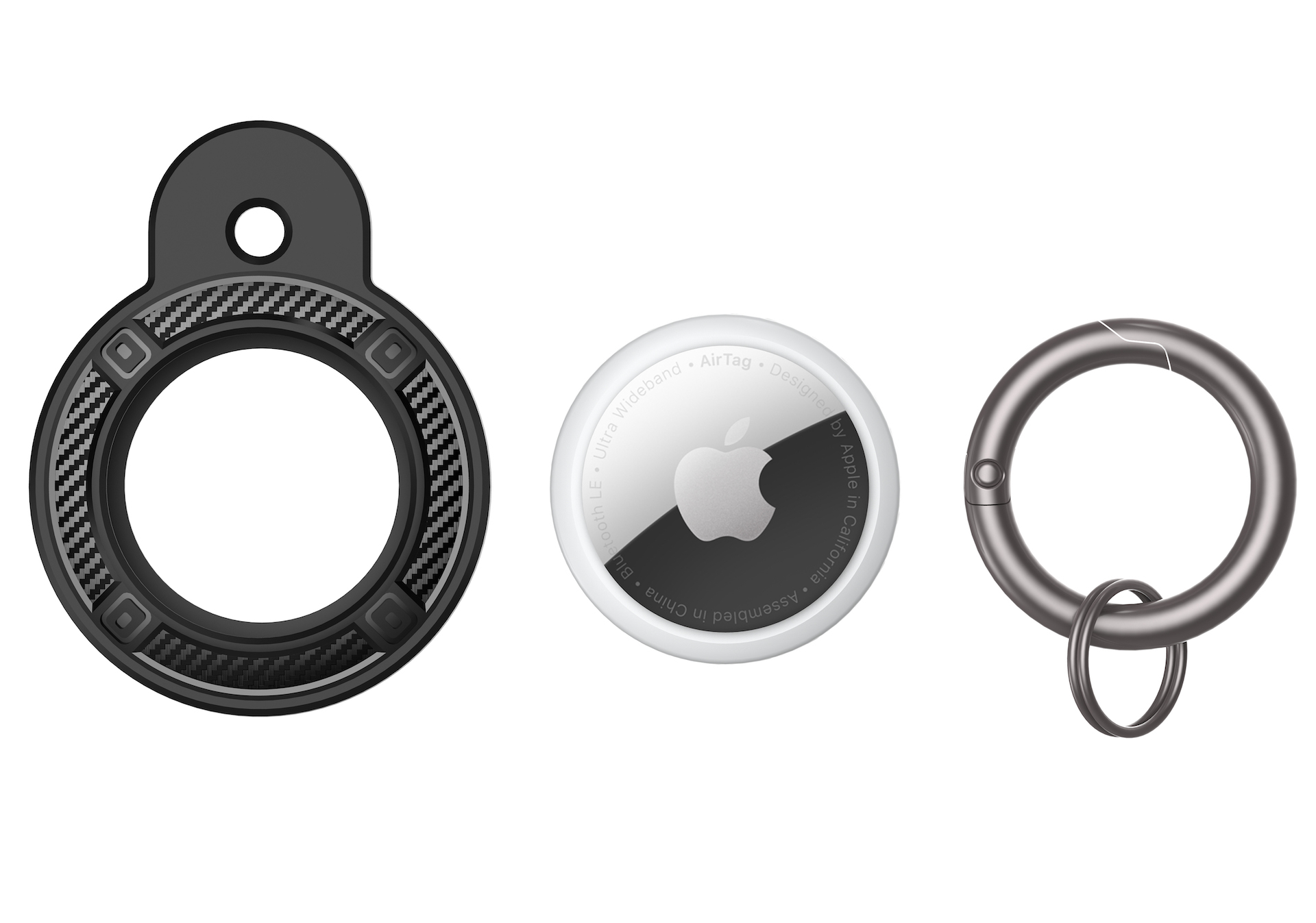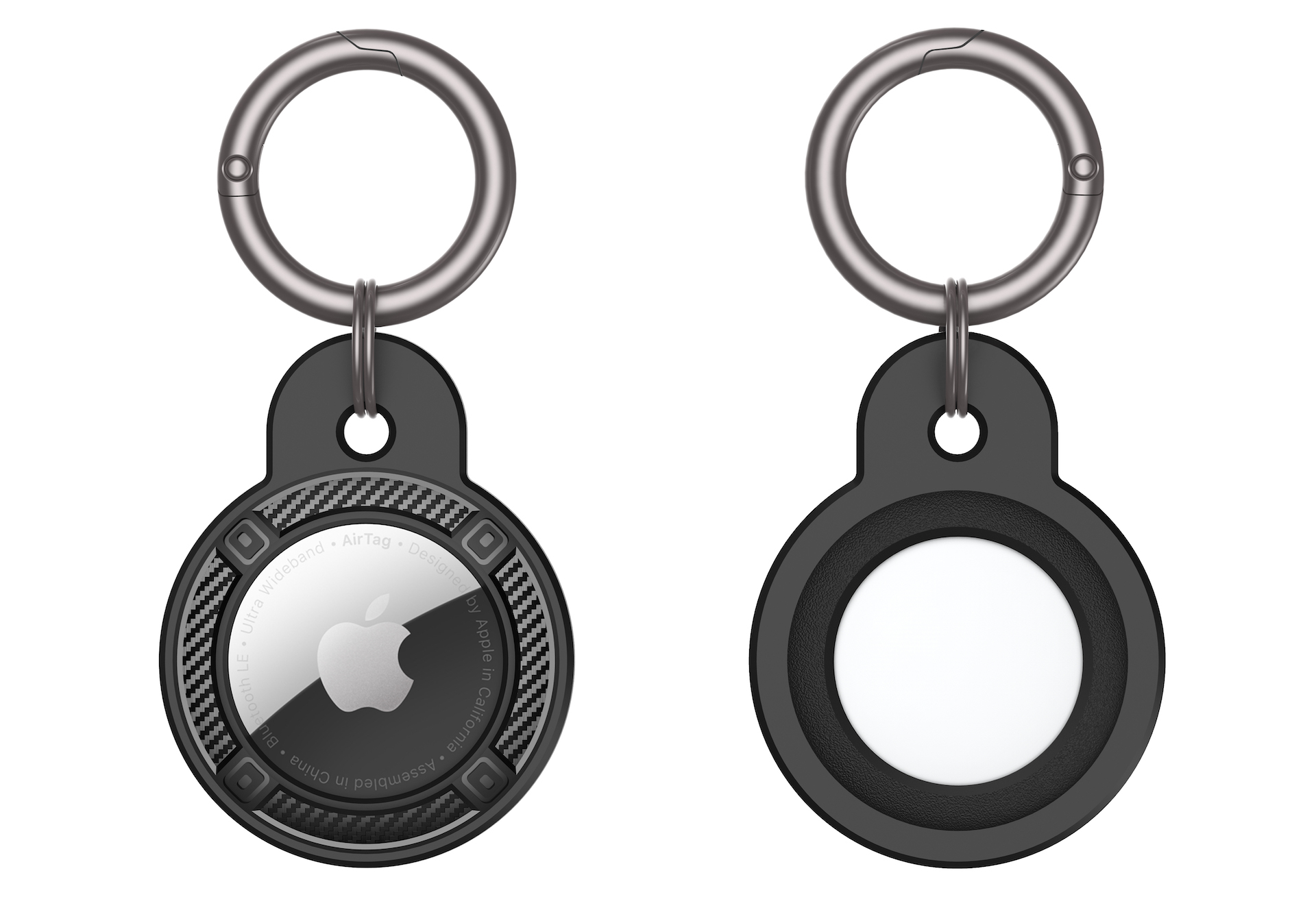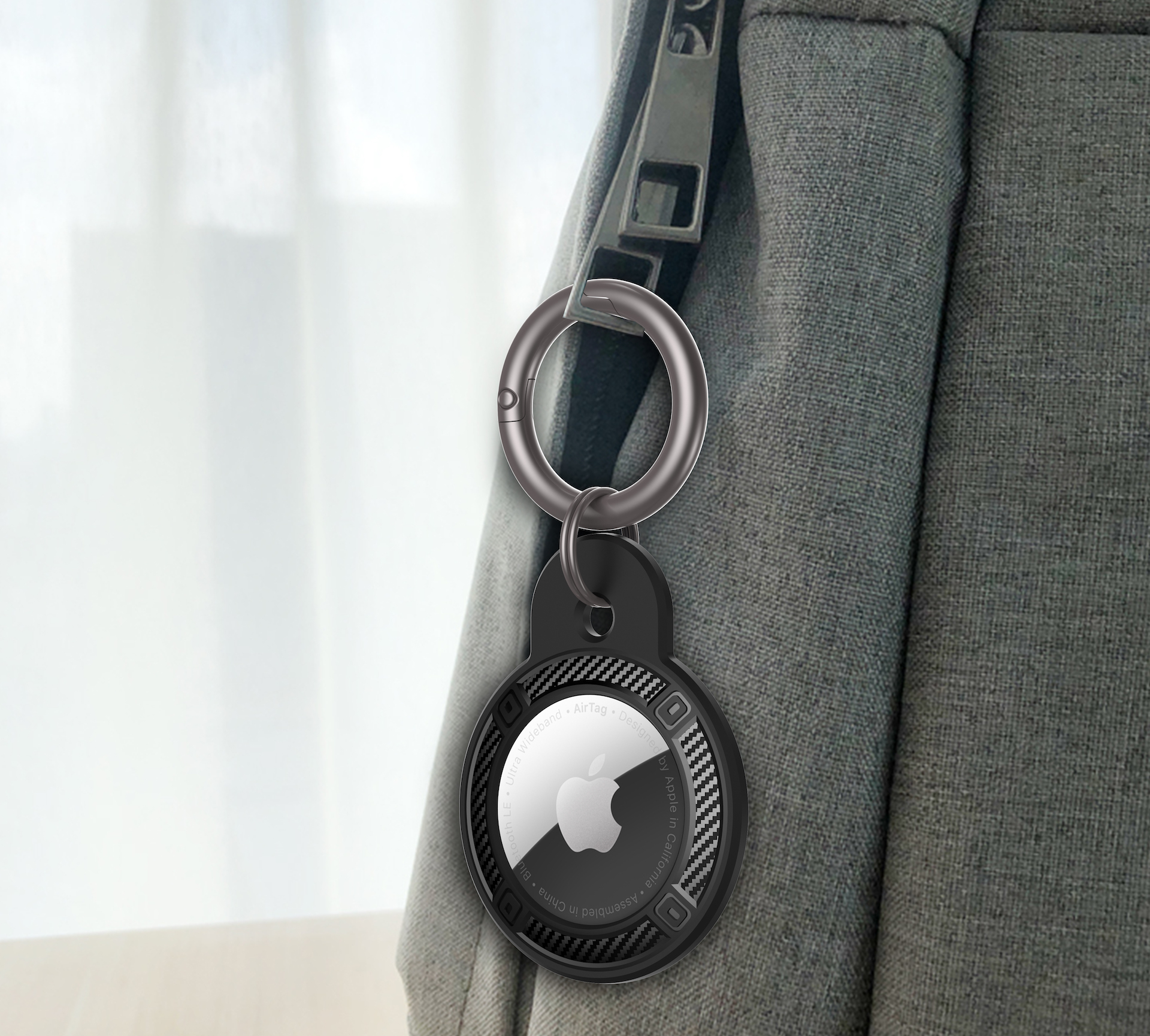 AhaStyle Air Tag Case, Rugged Carbon Fiber Texture Shockproof Case Cover Holder for Apple AirTag with KeyRing
