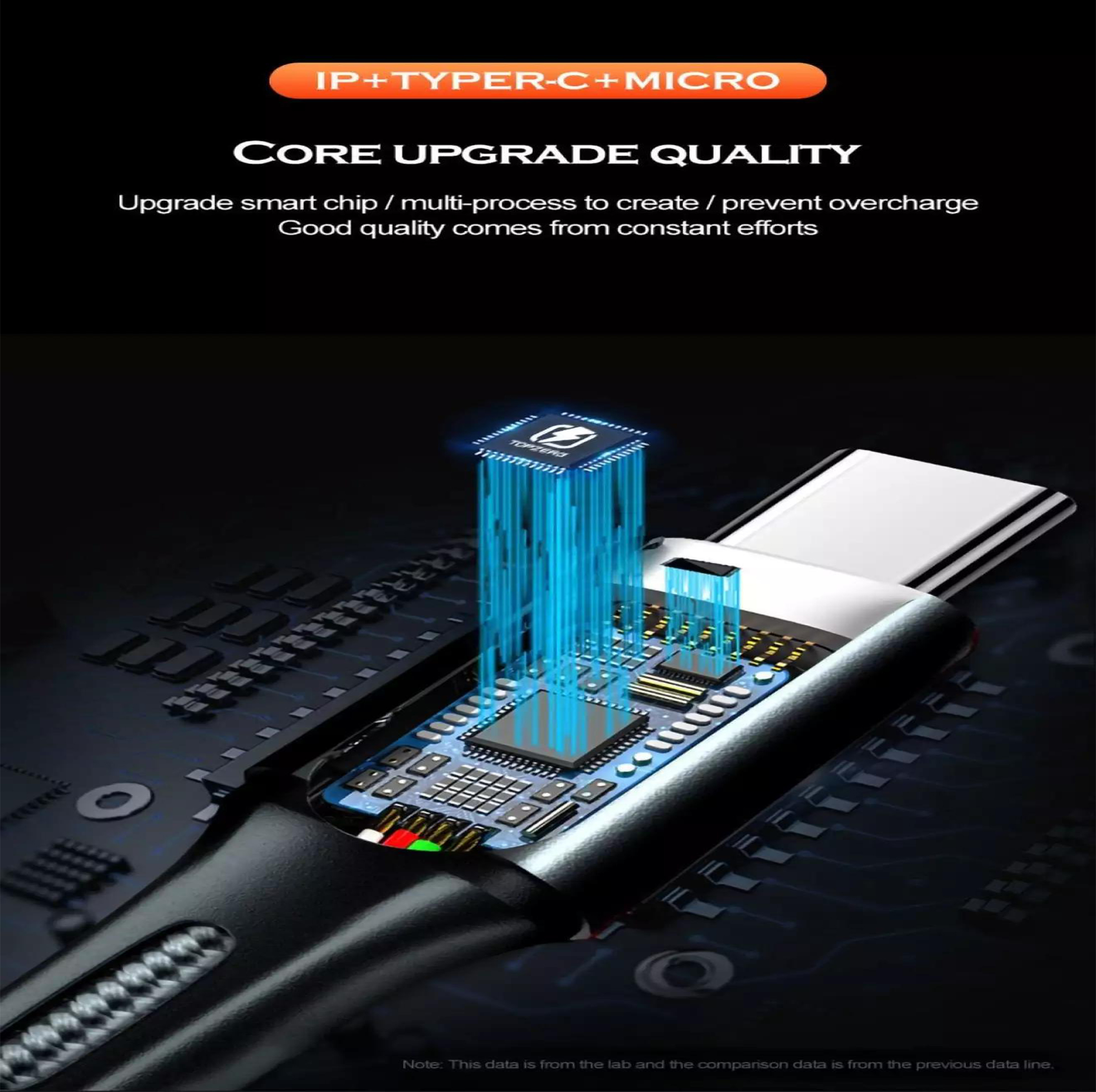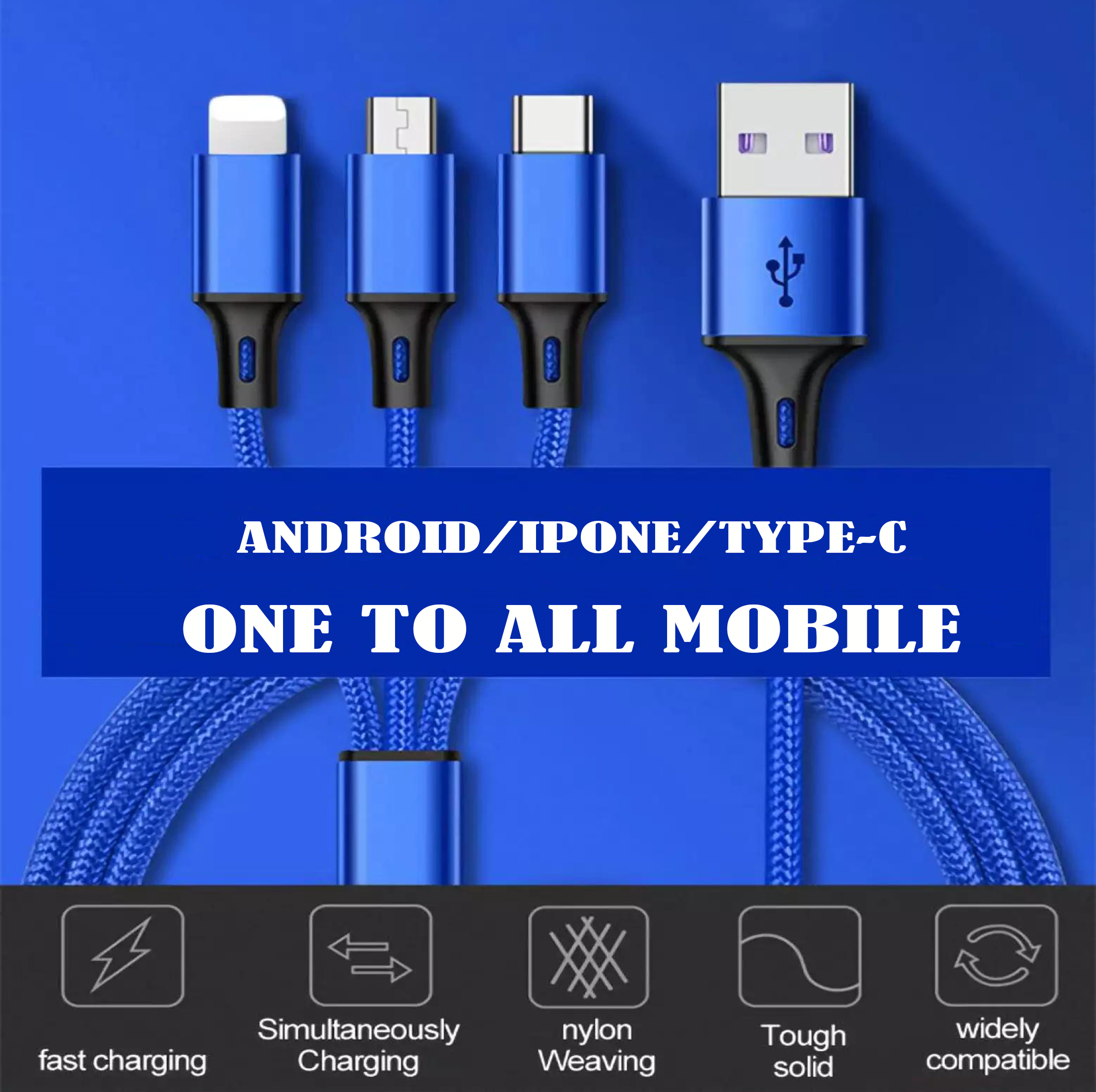 【3in1】 3A Quick Charging Usb C Cable Micro Usb/Type-C/Lightning Fast Charging Cord Super Fast Charger For IPhone12/11Pro max/XR/7/8Plus Xiaomi OPPO Samsung HuaWei Mate 20 30 Pro……