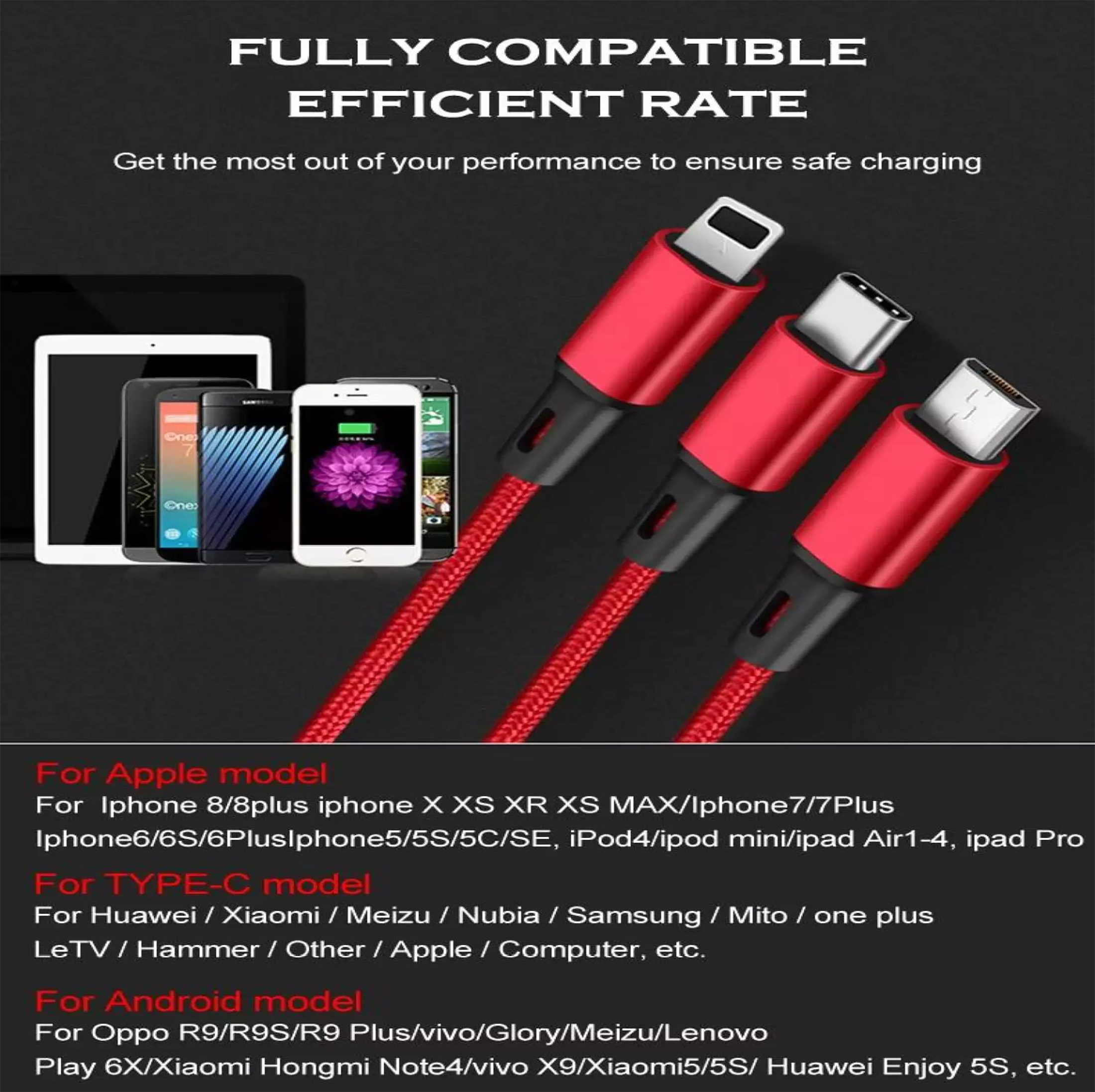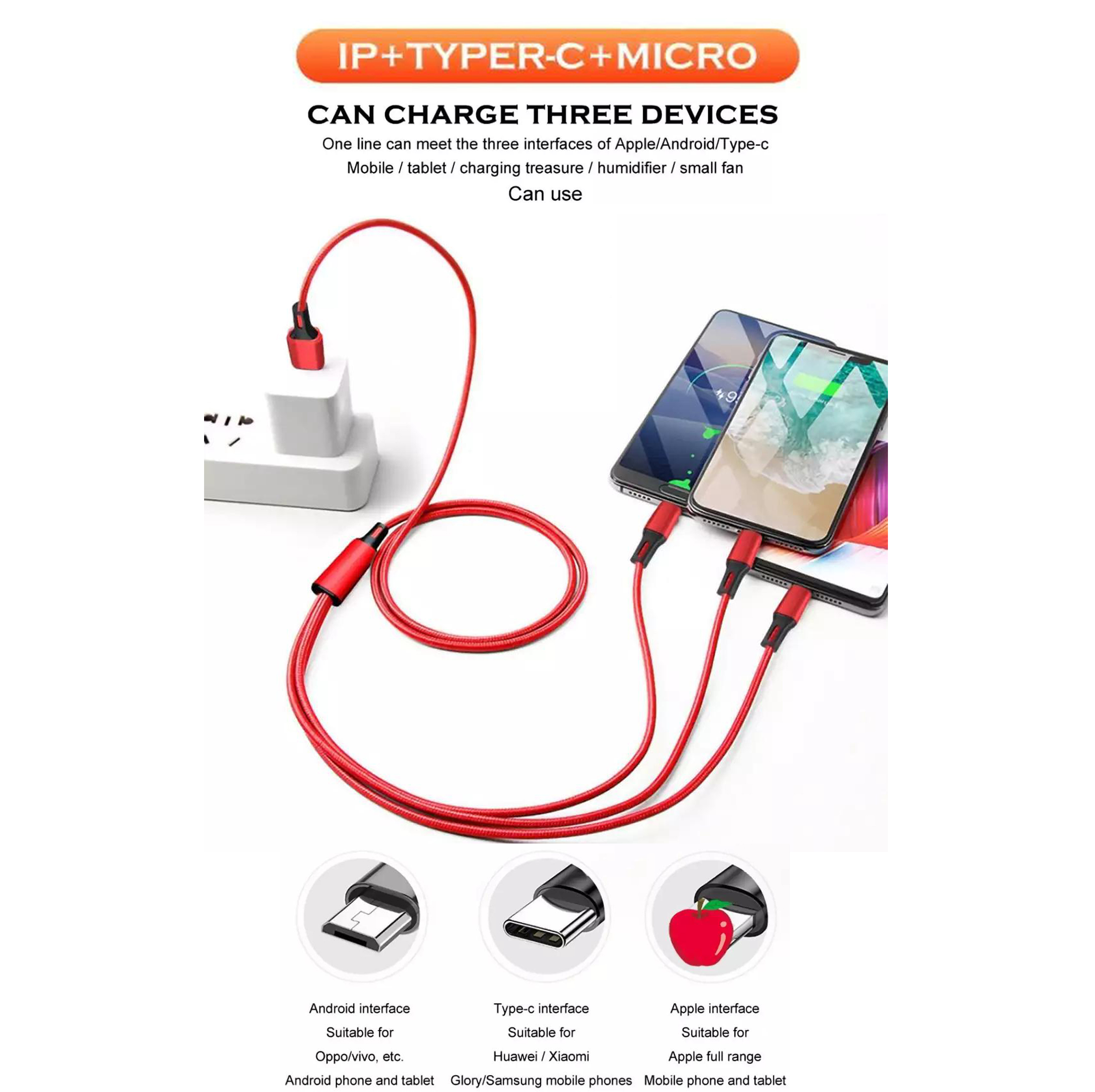 • 1.2M 3in 1 Type C Mirco USB Cable For Huawei Xiaomi OPPO One Plus Samsung