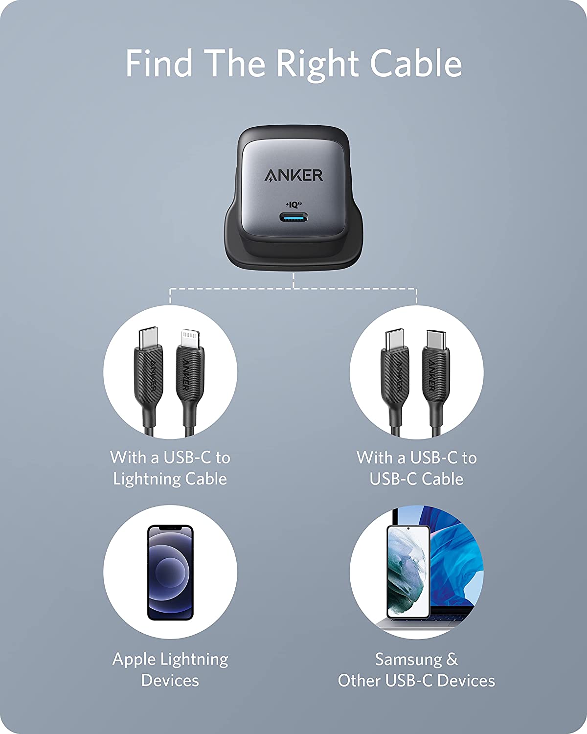 Use a USB-C to Lightning cable for Lightning devices and use a USB-C to USB-C cable for USB-C devices (cables sold separately)