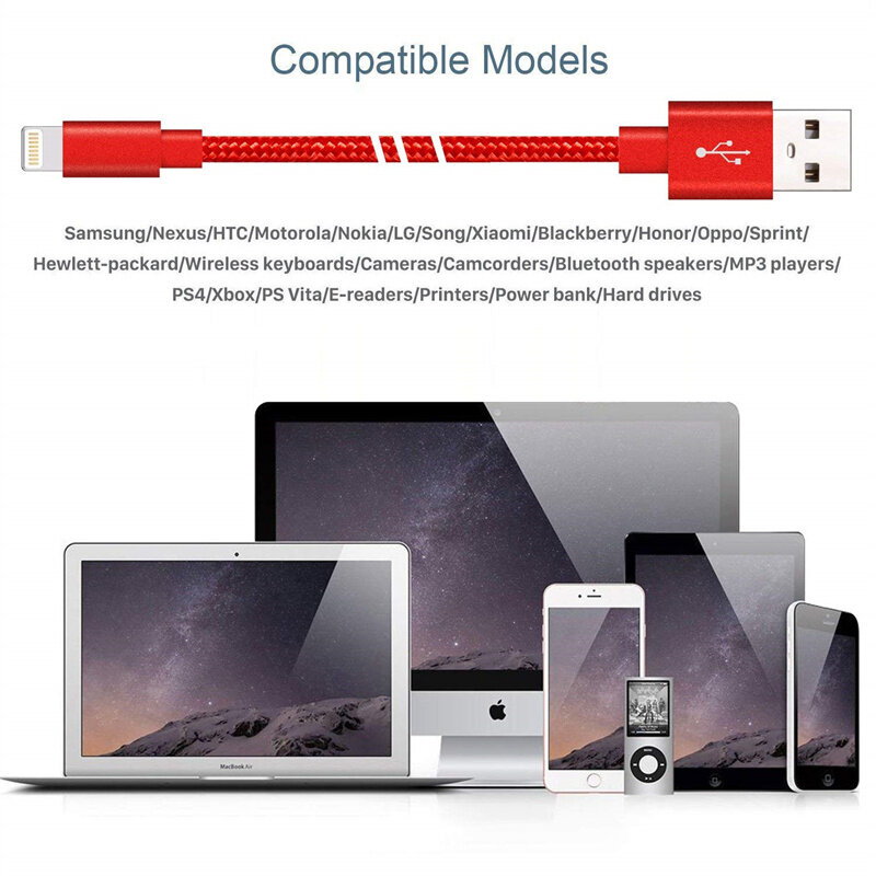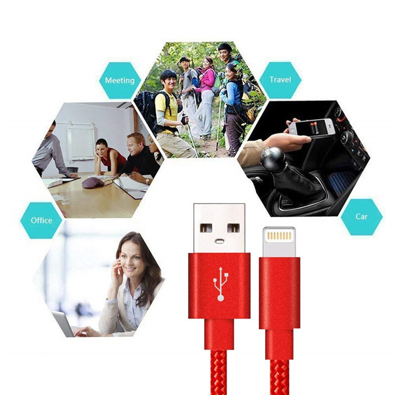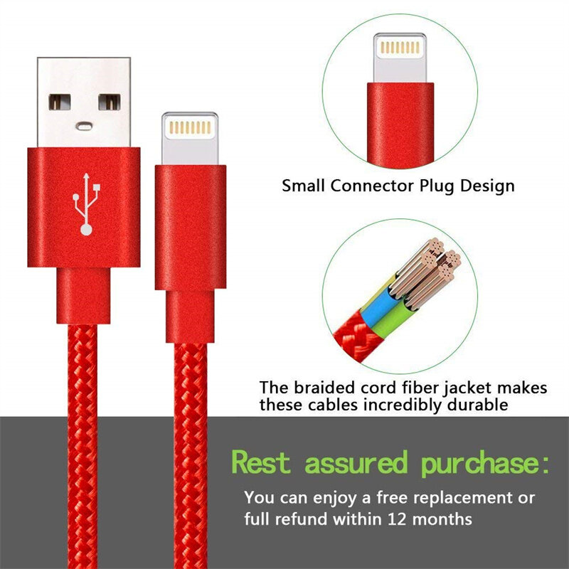 Heavy Duty Metal Braided Lightning USB Charger Cable 1M 2M 3M Compatible with iPhone X 7 6 5