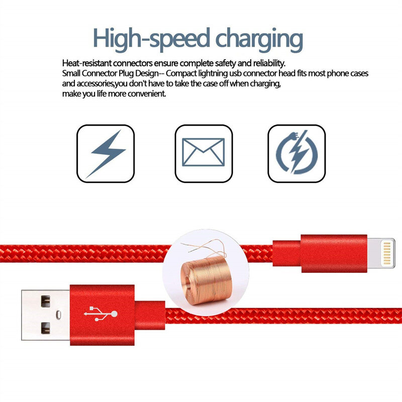 Not all iPhone Charging Leads are the same. Our inner Copper Core is more pure and thicker than your average cable, measuring at 22 AWG thickness this means this will charge your iPhone faster and will transfer data faster too compared to cheap alternatives. This smart charging cable with integrated smart chip determines the status of your iphone /