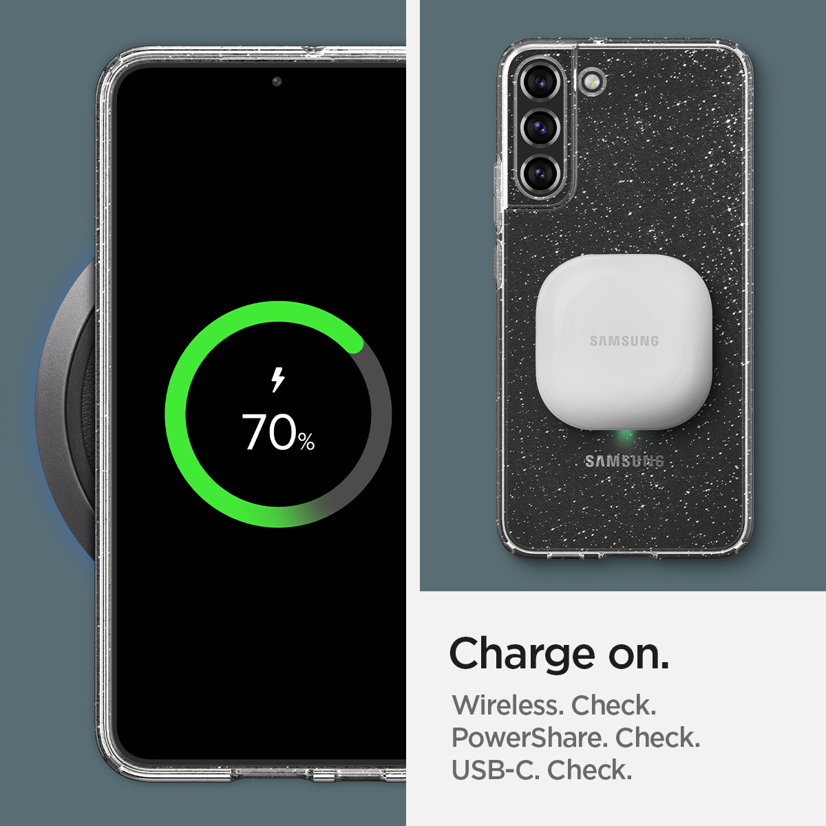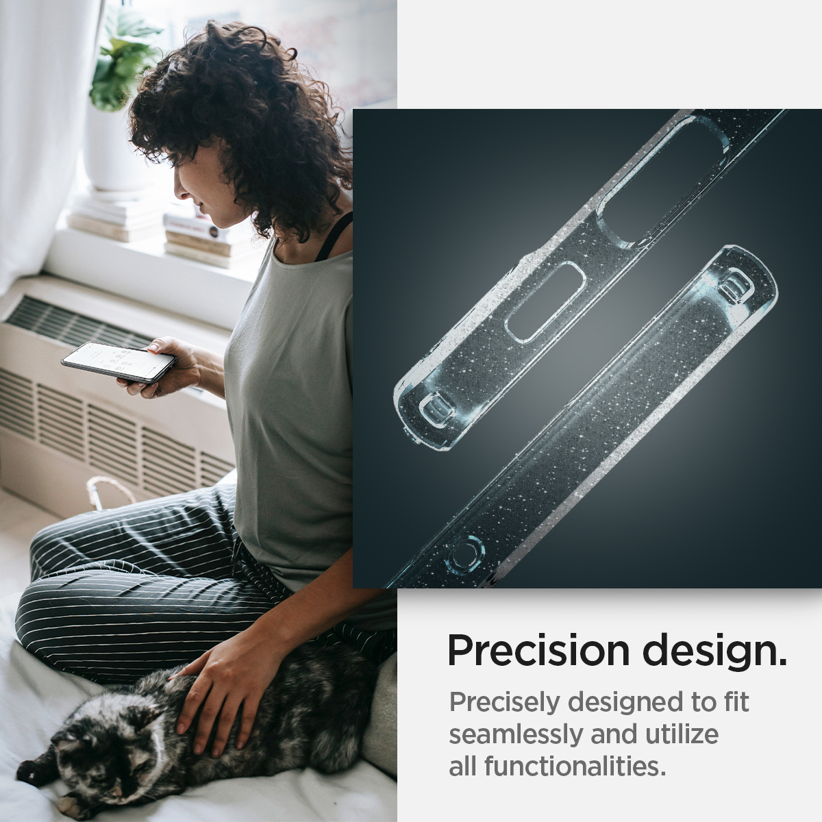 An absolute showstopper. Liquid Crystal® Glitter defends with a jaw-dropping frame decked out with specks of for the ultimate shine. Make a statement and sparkle wherever you go. Slim and grip-friendly for everyday use and anti-yellow blue resin for longer-lasting clarity
