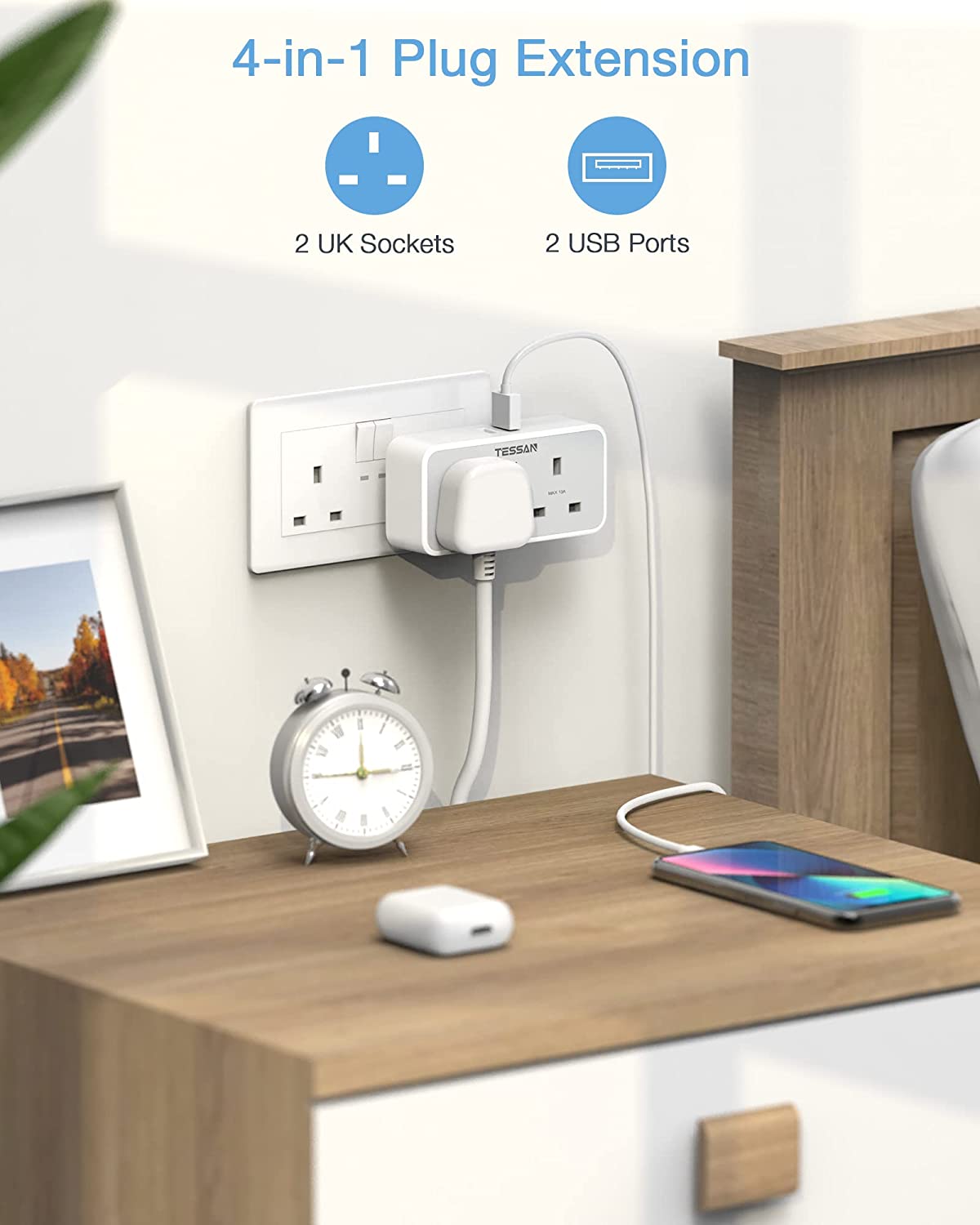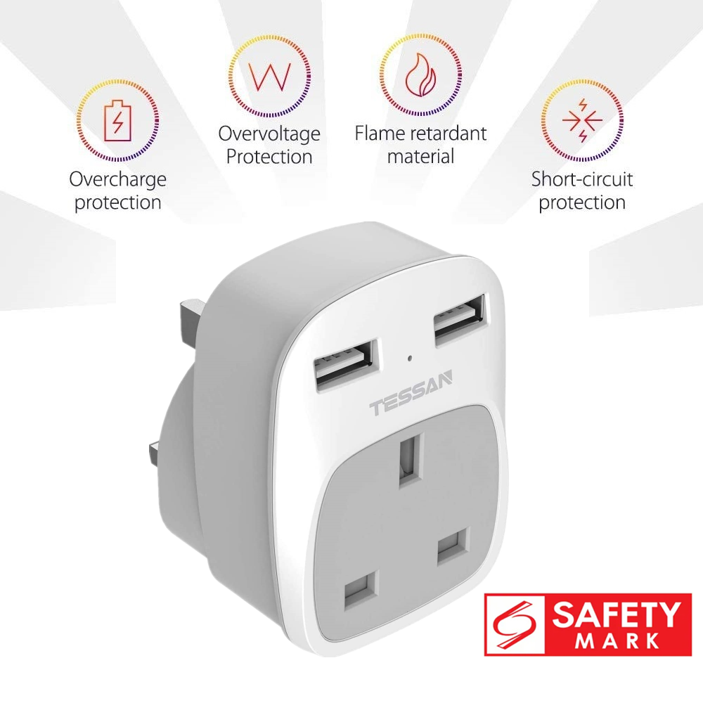 - 3 in 1 Shaver Charger Adapter: TESSAN 2 pin plug converter can extend a standard UK 3 pin socket to 2 pin sockets and 2 USB ports, allows you to charge a toothbrush or beard trimmer and 2 USB devices from a normal UK socket anywhere