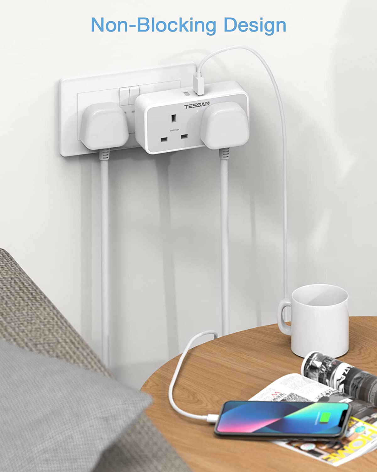 - Space Saving: Our USB plug adaptor UK occupies only one single socket on your wall panel, creating a charging station and will not block the other socket in the same row