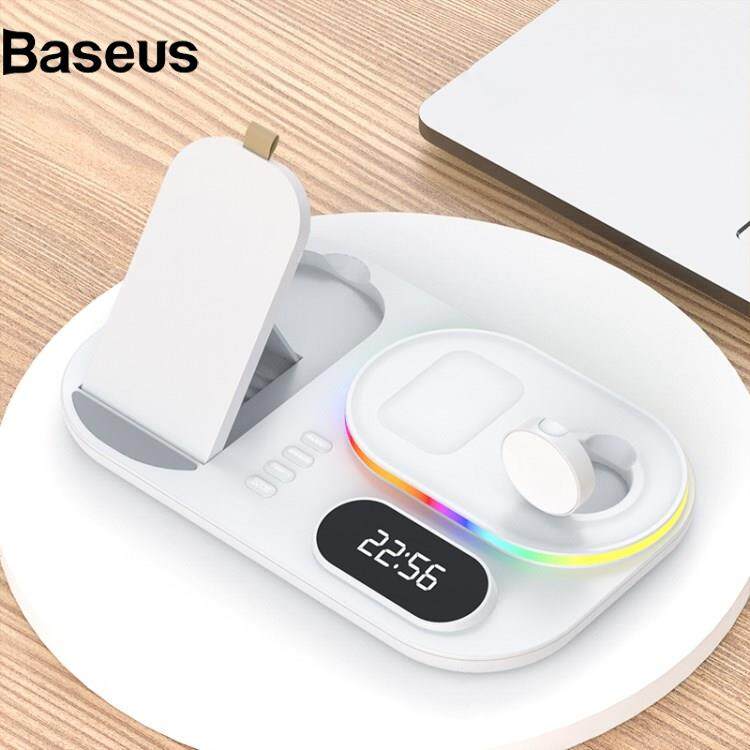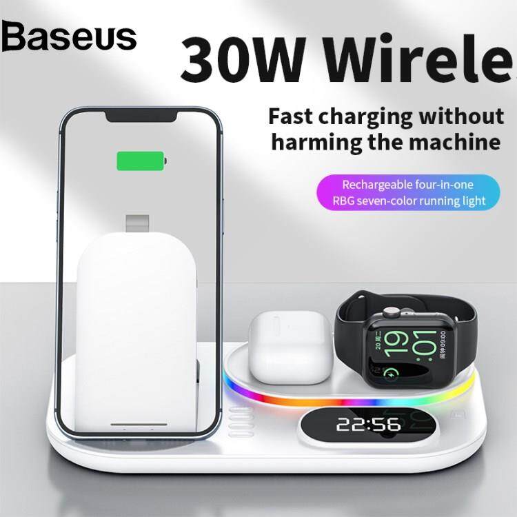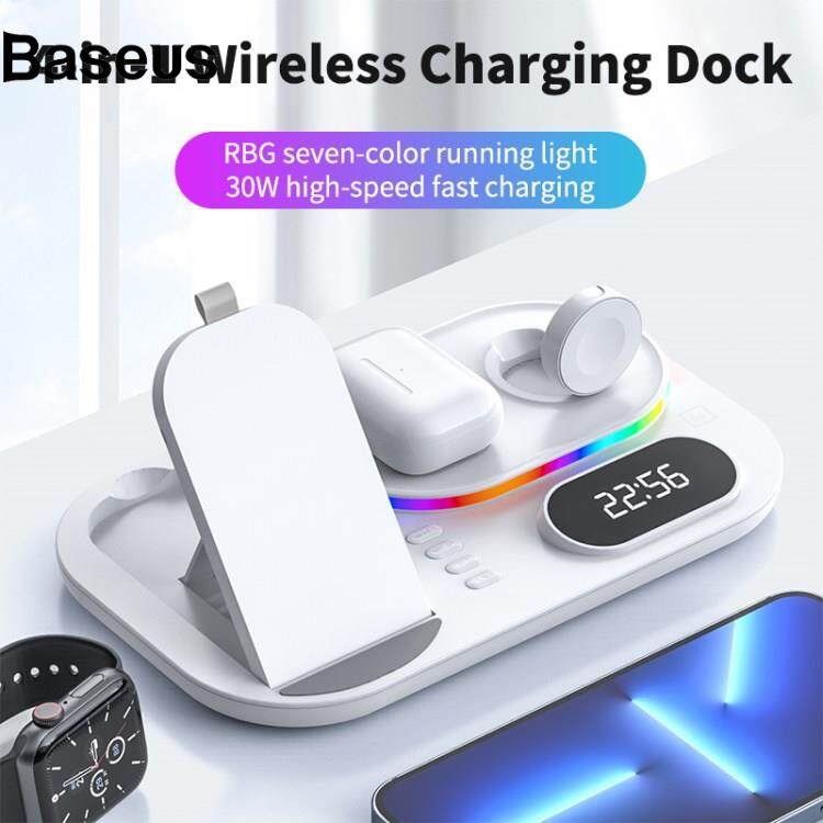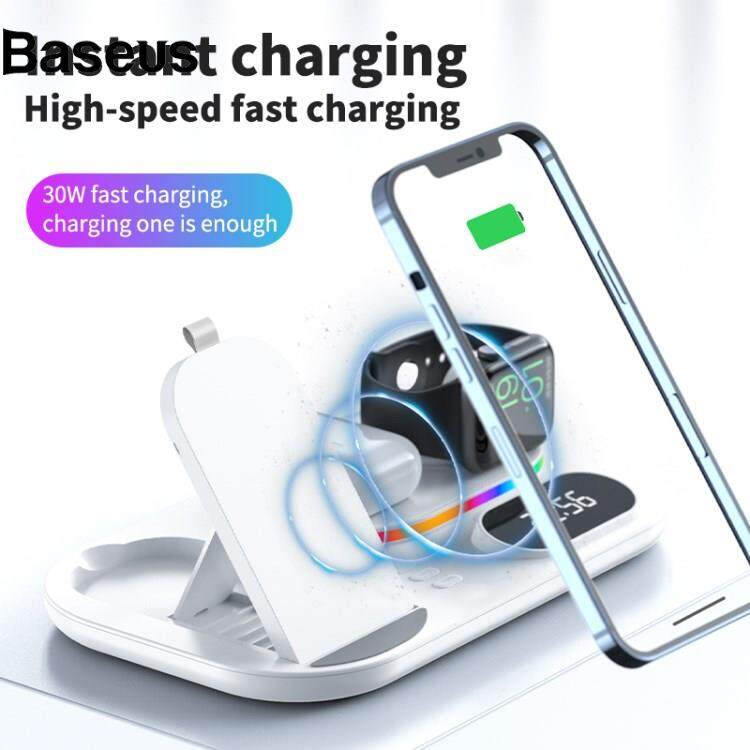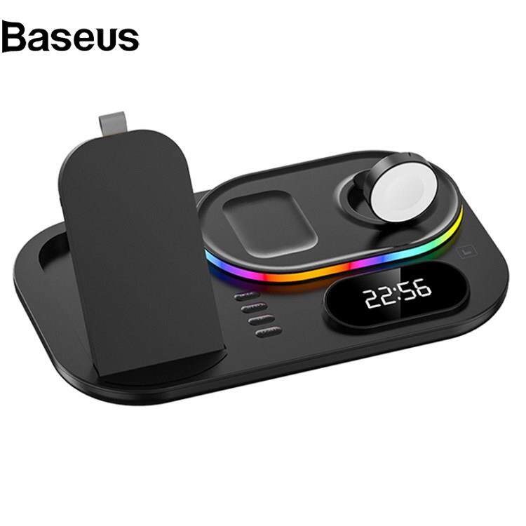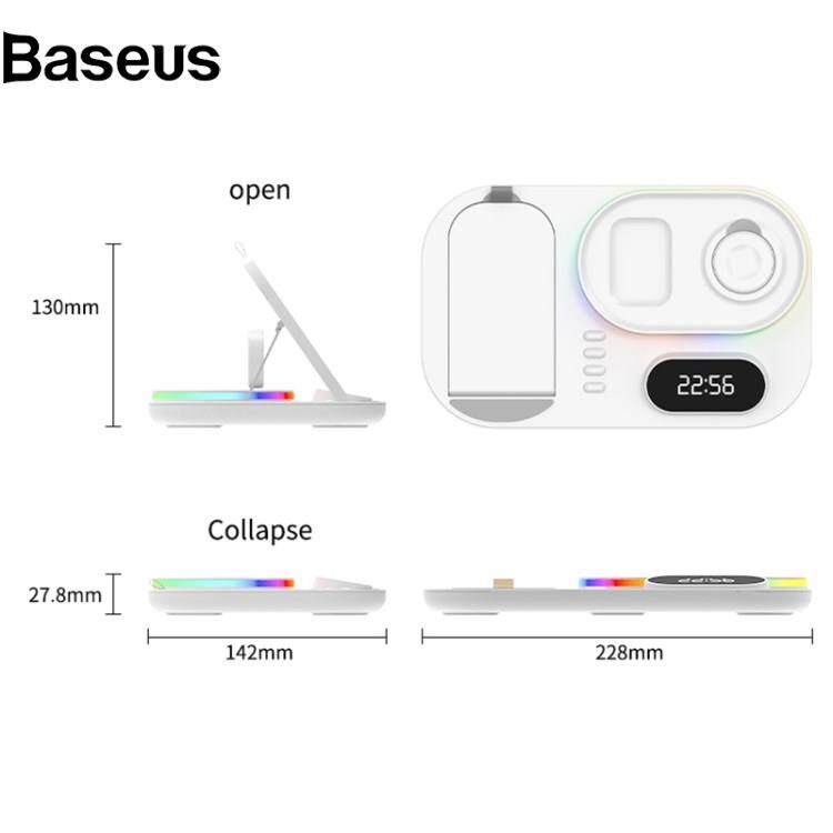 Baseus A06 4 in 1 Mobile Phone Fast Wireless Charger Multi-functional Charging Dock with Clock Display/RGB Light?24hrs ship out?