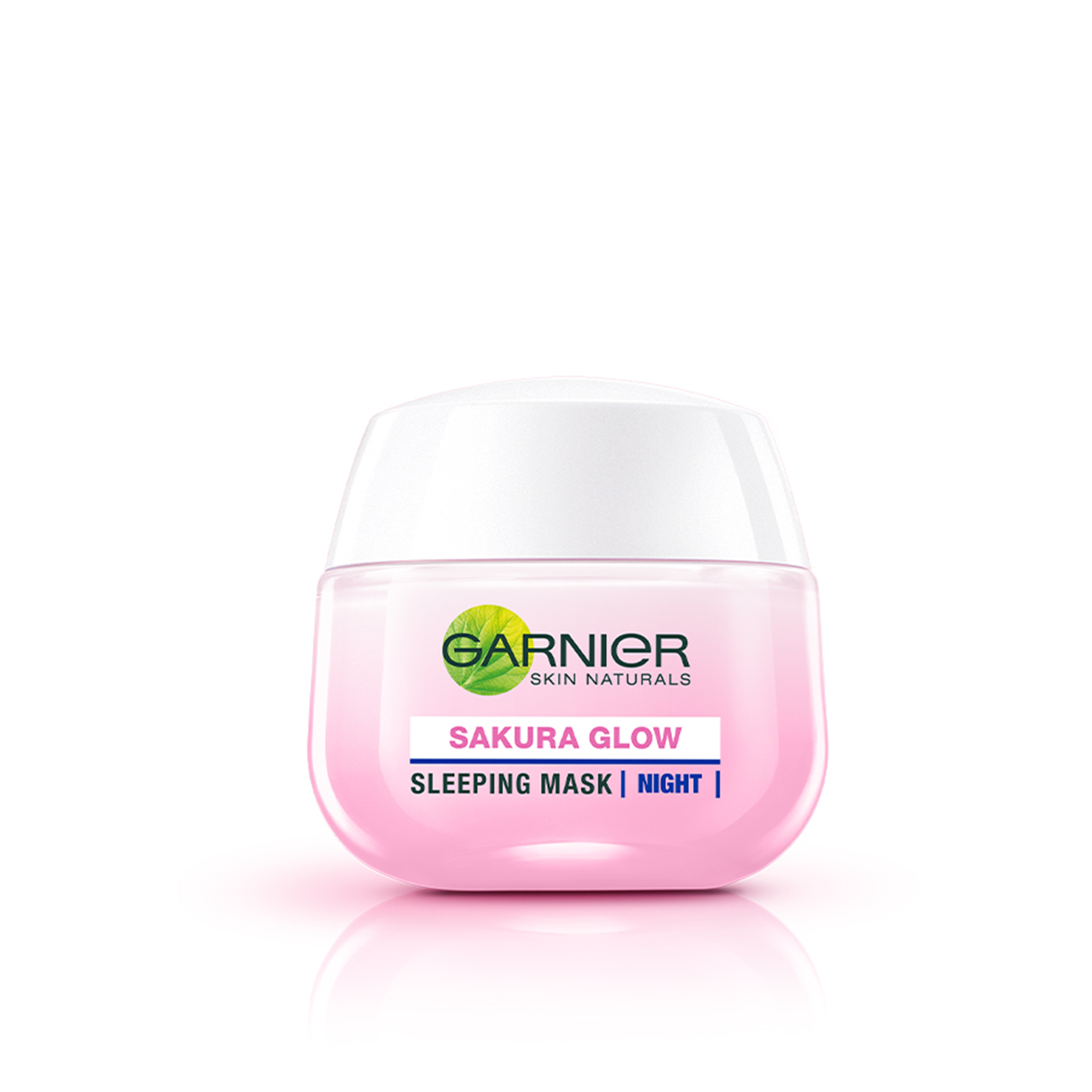 Garnier Sakura White Pinkish Radiance Sleeping Essence, enriched with 2x Sakura Extracts, Natural Fruit Extracts and Vitamin CG, hydrates skin for 24 hours, lightens skin tone, fade dark spots and refine skin texture.