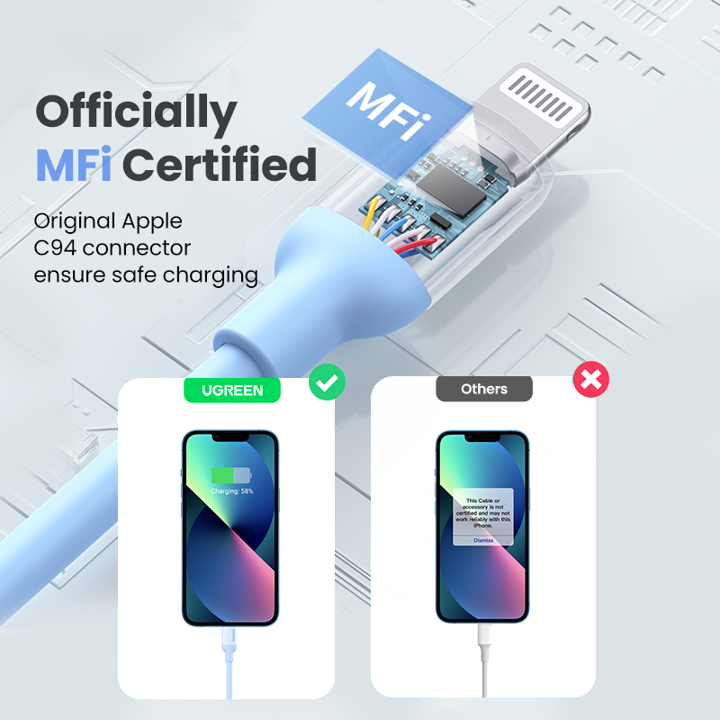 UGREEN MFI 60W USB-C Lightning Cable Power Delivery Fast Charging Coloful Cable for iPhone 14 13 Pro Max iPhone 14 Plus iPhone 12 11 Pro Max iPhone SE 2 3 Tpye C