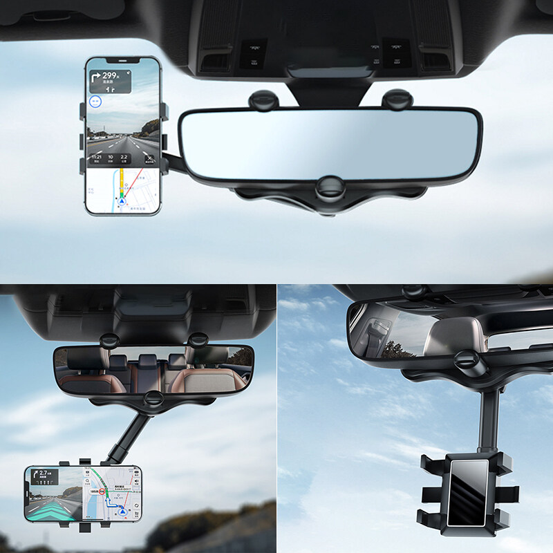 360° Rotating Rearview Mirror Phone Holder Adjustable Car Mount Car Interior Accessories