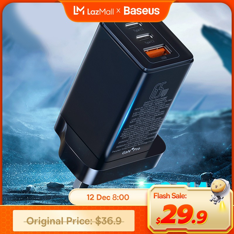 Baseus 65W GaN3 Fast Charger PD3.0 QC4.0 USB Type C Quick Charger For iPhone 13 Pro Max Laptop Samsung Huawei