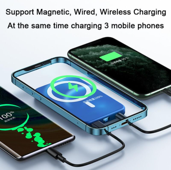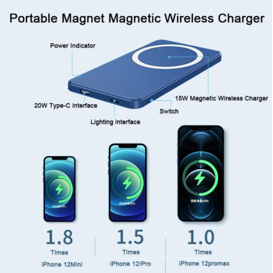 Brand Name: olevoBattery type: Lithium polymerBattery characteristics: charger and battery in 1Output interface: USB-Type COutput interface: wireless chargerCertification: CEPlace of Origin: CN (Place of Origin)Input interface: USB Type CShell material: plasticType: Power bank supports fast chargingTechnology: Two-way fast chargeMaximum input: 20WEach order will give 2 magnetsThis magnet can turn your mobile phone or mobile phone protective cover into the magnetic safety magnet you want to place. For iphone12 series or Magnetic case, no magnet is needed. Support all Qi mobile phone wireless charging For iphone 8-12 xiaomi huawei SamsungProduct Description:Lightning + C type interface[product model]: PD20w magnetic chargeCompatible with huawei xiaomi PD22.5W super fast charge[product parameters]: PD20w power bank + 15W wireless charger[product capacity]: 5000mAh/10000mAh[product size]: 5000mAh:100*65*10mm 120g/10000mAh 110*68*17 mm 185gStandard configuration: package + machine + data line + instruction[product features]:1. Pd20w magnetic absorption power bank + 15W wireless charging2. The charging protocol is stable and does not burn.3.Wireless charging for mobile phones and Bluetooth headsets