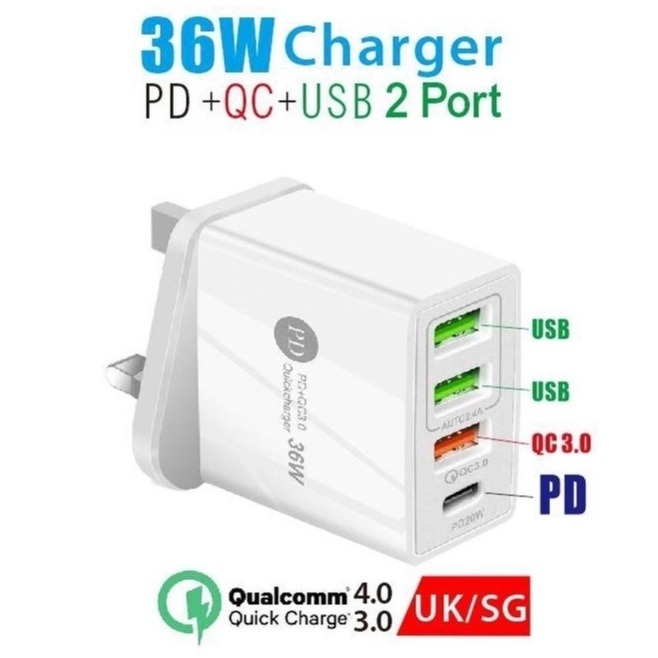 - USB 2: QC 4.0/3.0 (2.4A) support QC2.0/QC1.0