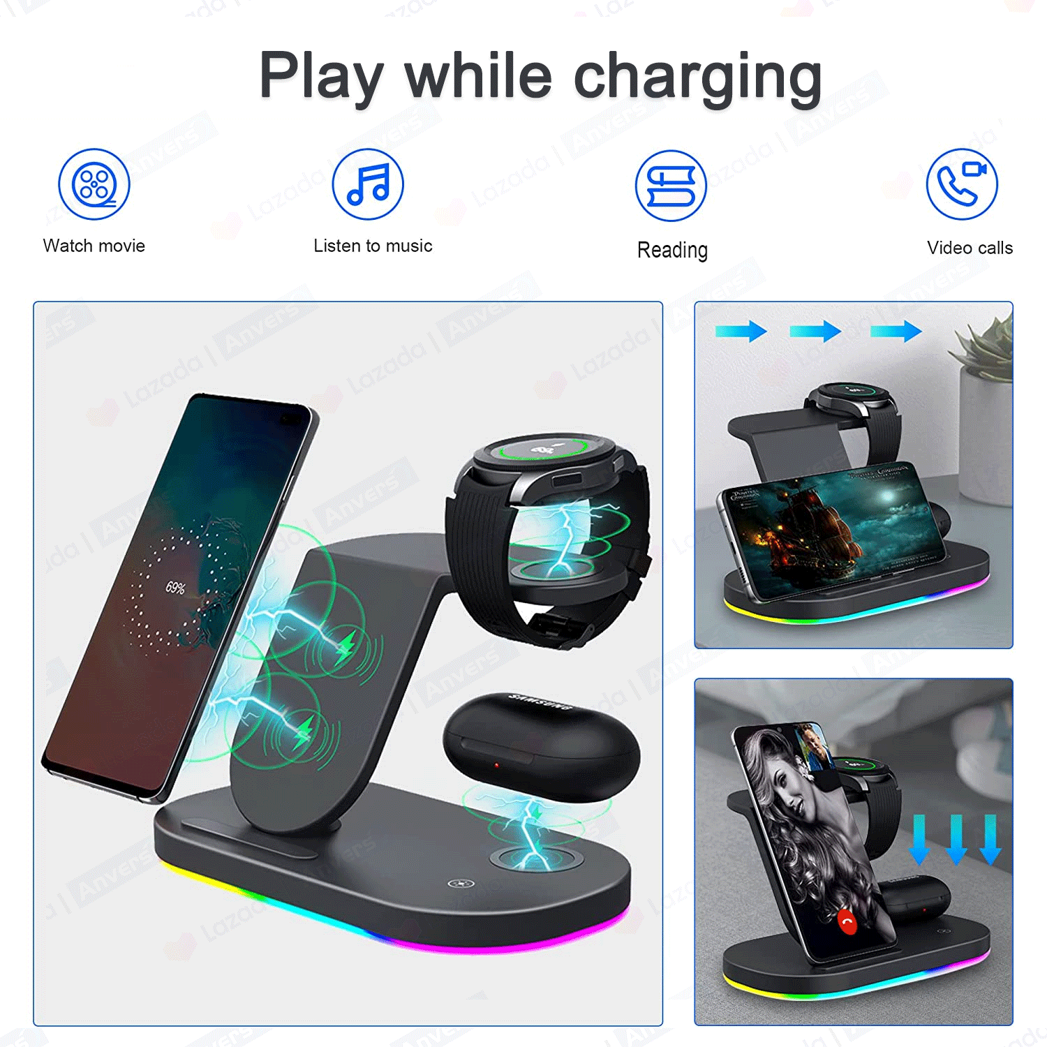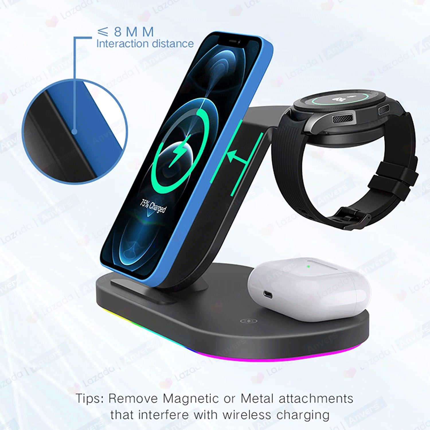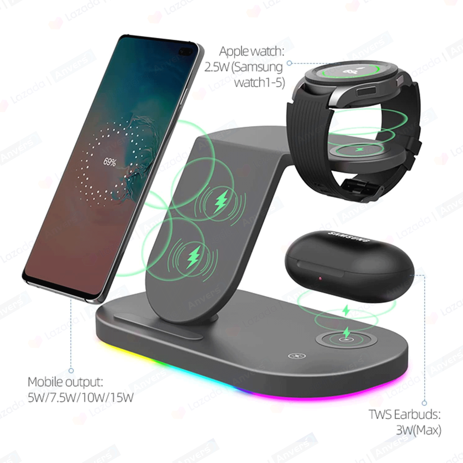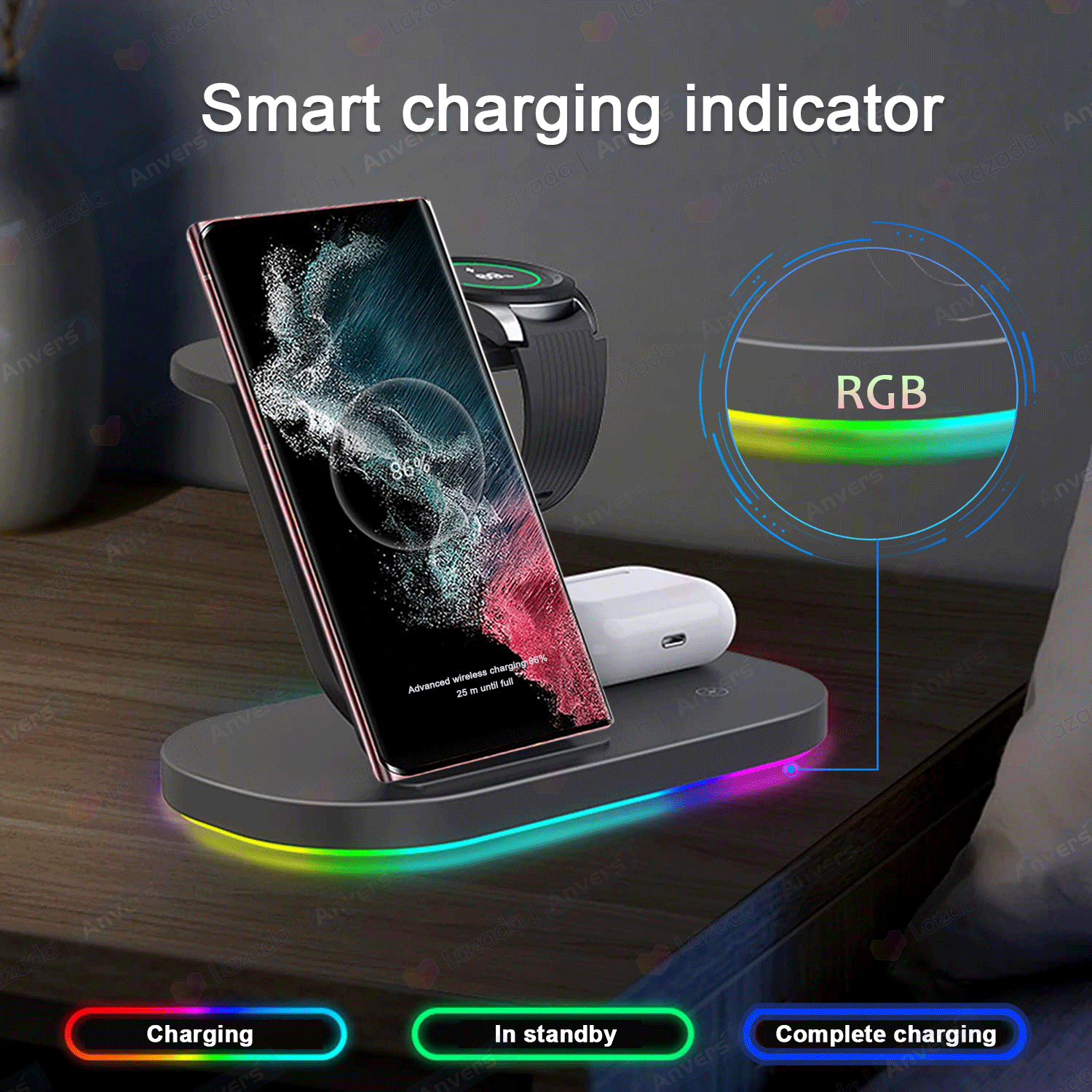ANVERS 3 in 1 Wireless Charger for Samsung Devices,RGB charging indicator, Android 15W Wireless Fast Charging Station for Samsung Galaxy S22/S22+/S22 Ultra/S21/S20/S10/Note20/Note10, Galaxy Watch 5/4/