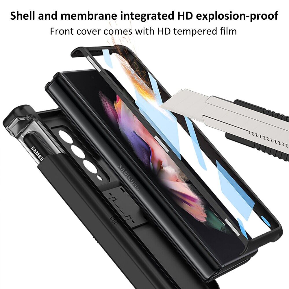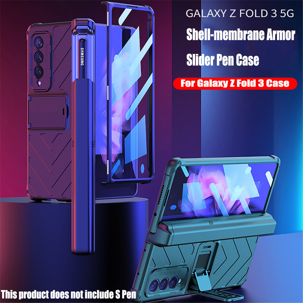 【With Screen Film】KISSCASE Magnetic Armor Slide Cover Invisible Pen Slot Shell Film Integrated For Galaxy Z Fold 4 Case Hinged Bracket Hard Case Built-in Screen Protector Shockproof Holder Stand Phone Case For Samsung Galaxy Z Fold 3 5G