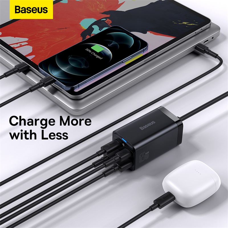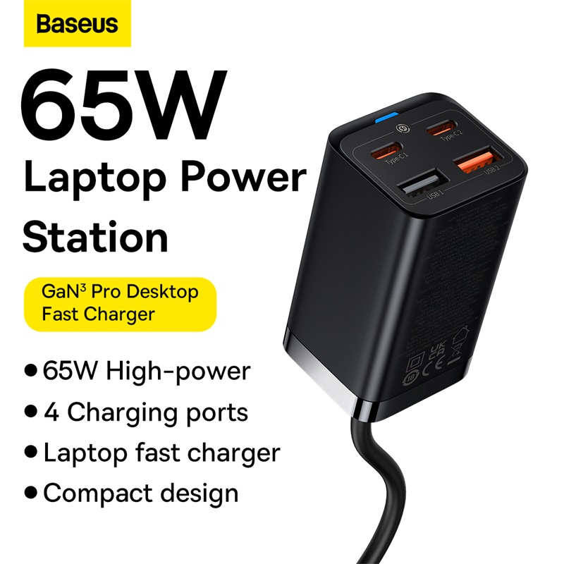 Baseus 65W GaN3 Pro Desktop Charger QC 3.0 PD 4.0 Fast Charger For iPhone 13 12 Pro Max USB Type C Fast Charging Station For MacBook Laptop Xiaomi Samsung