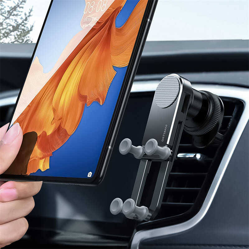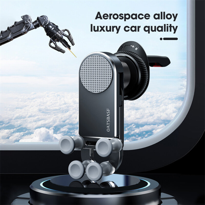 5. The car mobile phone seat is made of aviation aluminum alloy, using CNC anodizing and vacuum electroplating technology, will not aging and fracture. When your phone is placed, the dock automatically uses gravity to firmly lock your phone. When taking off the phone, automatic recovery compact, not blocking the vent is not abrupt.