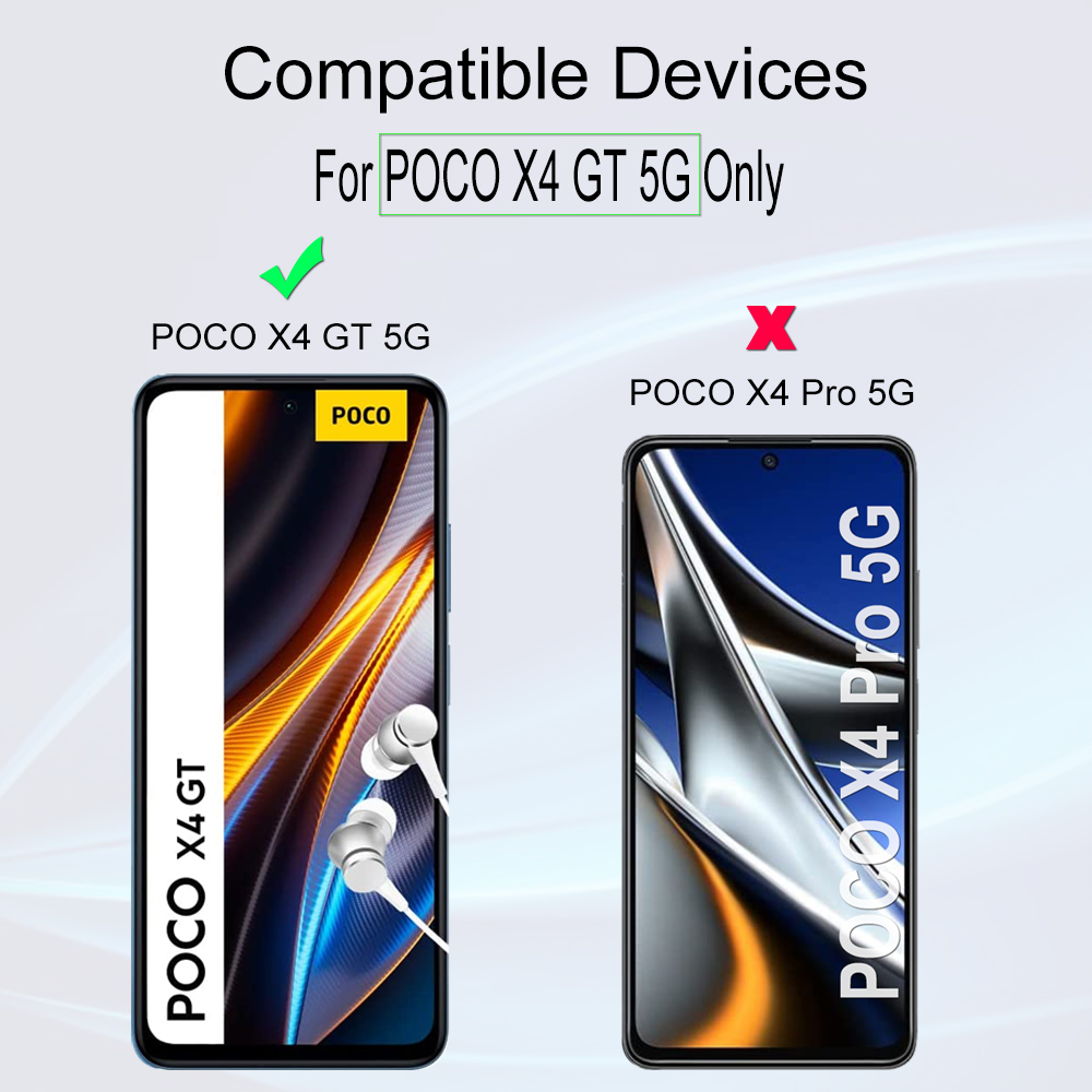 [Case Friendly]:The screen protector is smaller than the device's screen due to POCO X4 GT 5G curved edges design.The space between POCO X4 GT 5G and the screen protector enables proper installation for most phone cases.