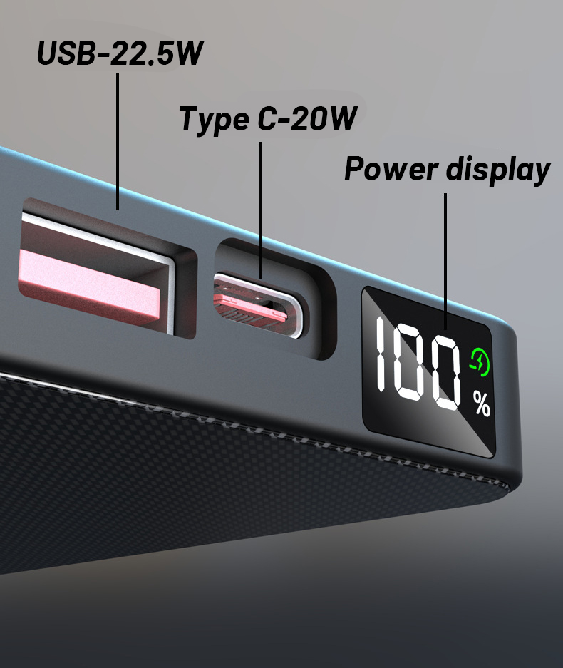 PD22.5W Super/Fast Charging. Power Bank comes with Battery Percentage Digital Display.