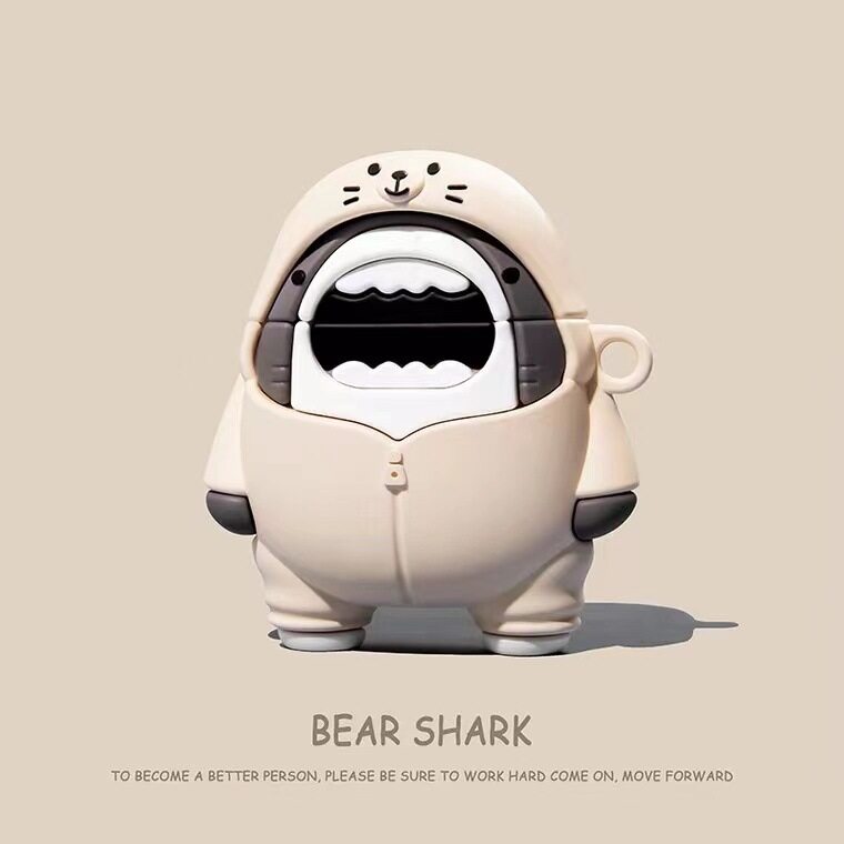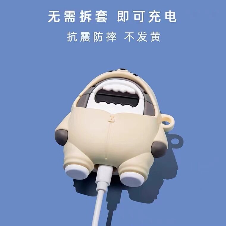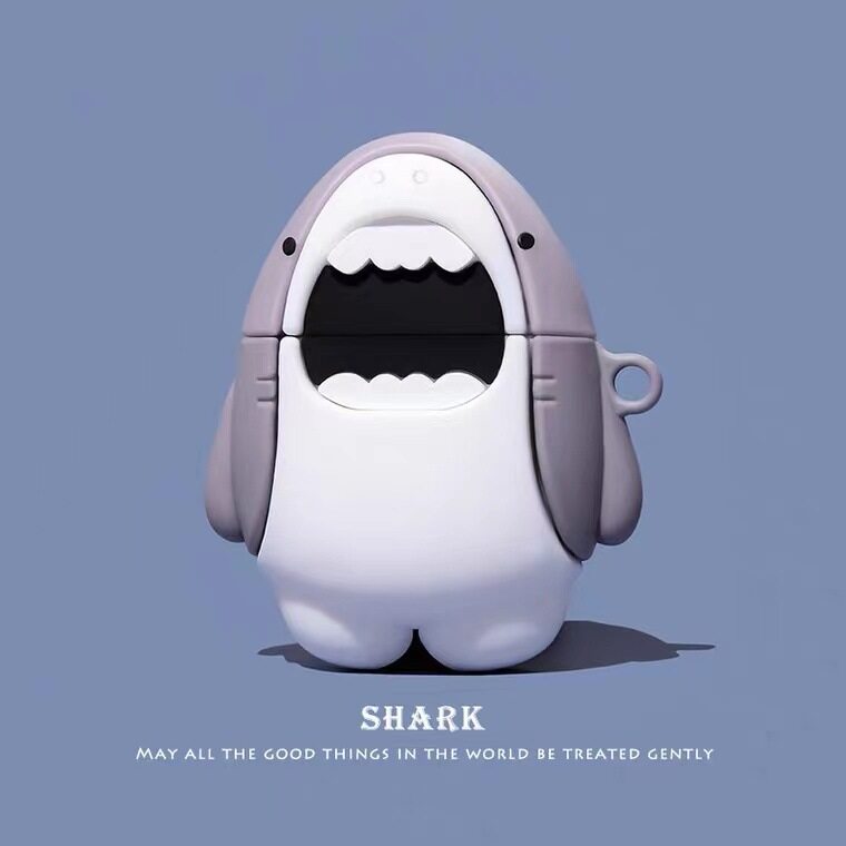 KISSCASE For Airpods Pro Funny Shark Sillicone Protective Cover Creative Cartoon Protective Cover Suitable For Apple Airpods 3/2/1 Pro Model Anti-Fall Soft Case