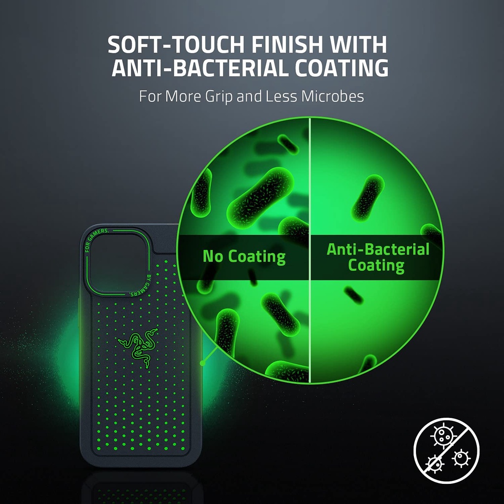 The case has a grippy texture that not only makes it easier to hold and prevents accidental drops, but also comes with a layer of protection that prevents the growth of bacteria during daily use.