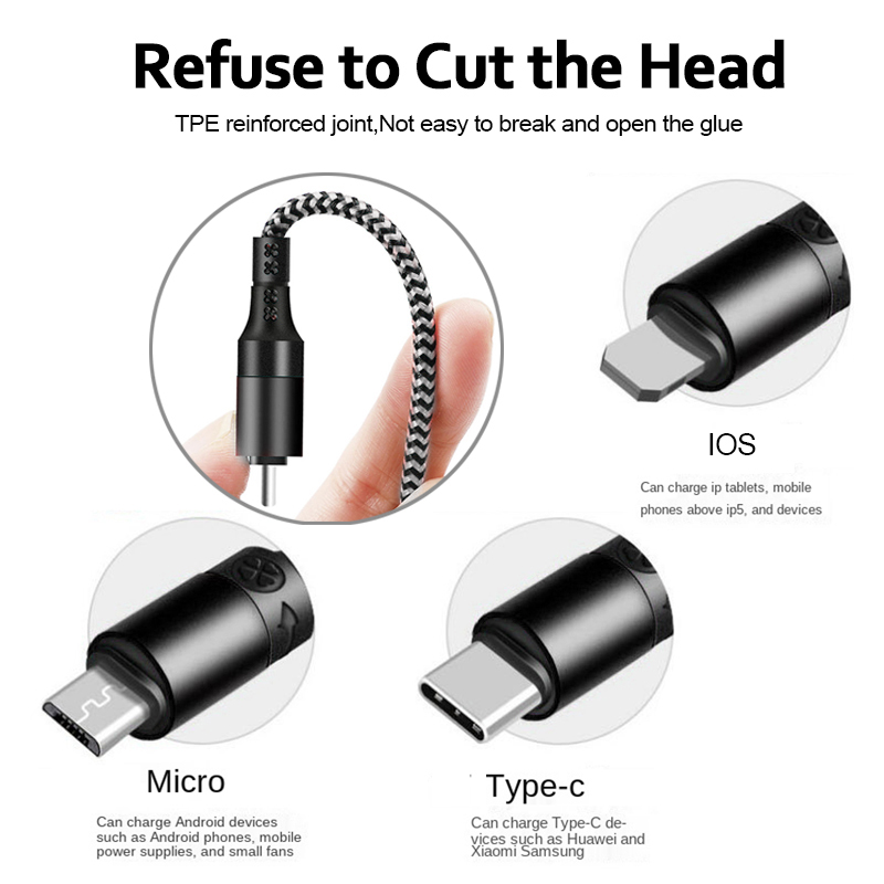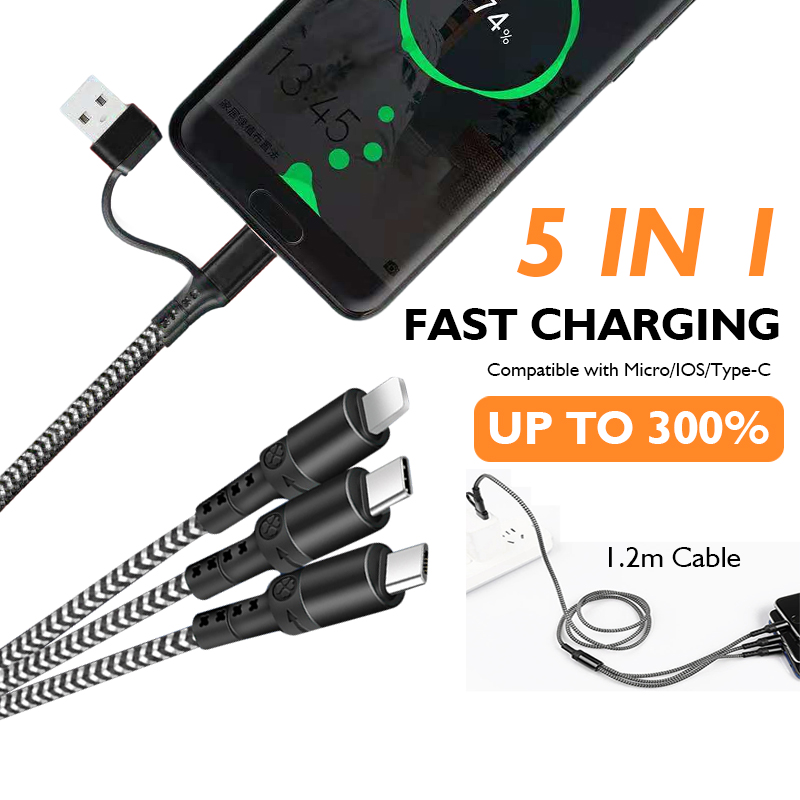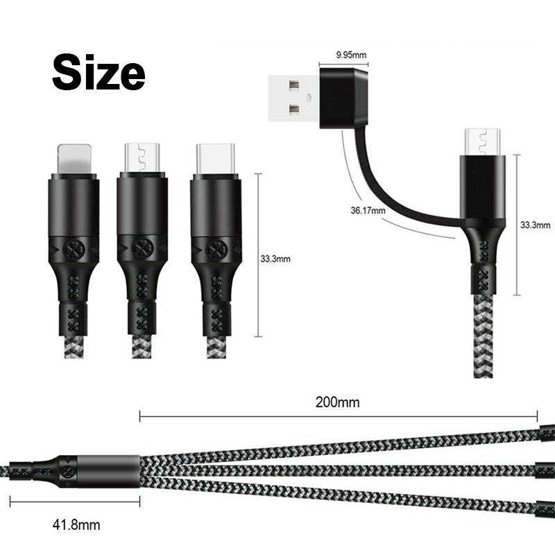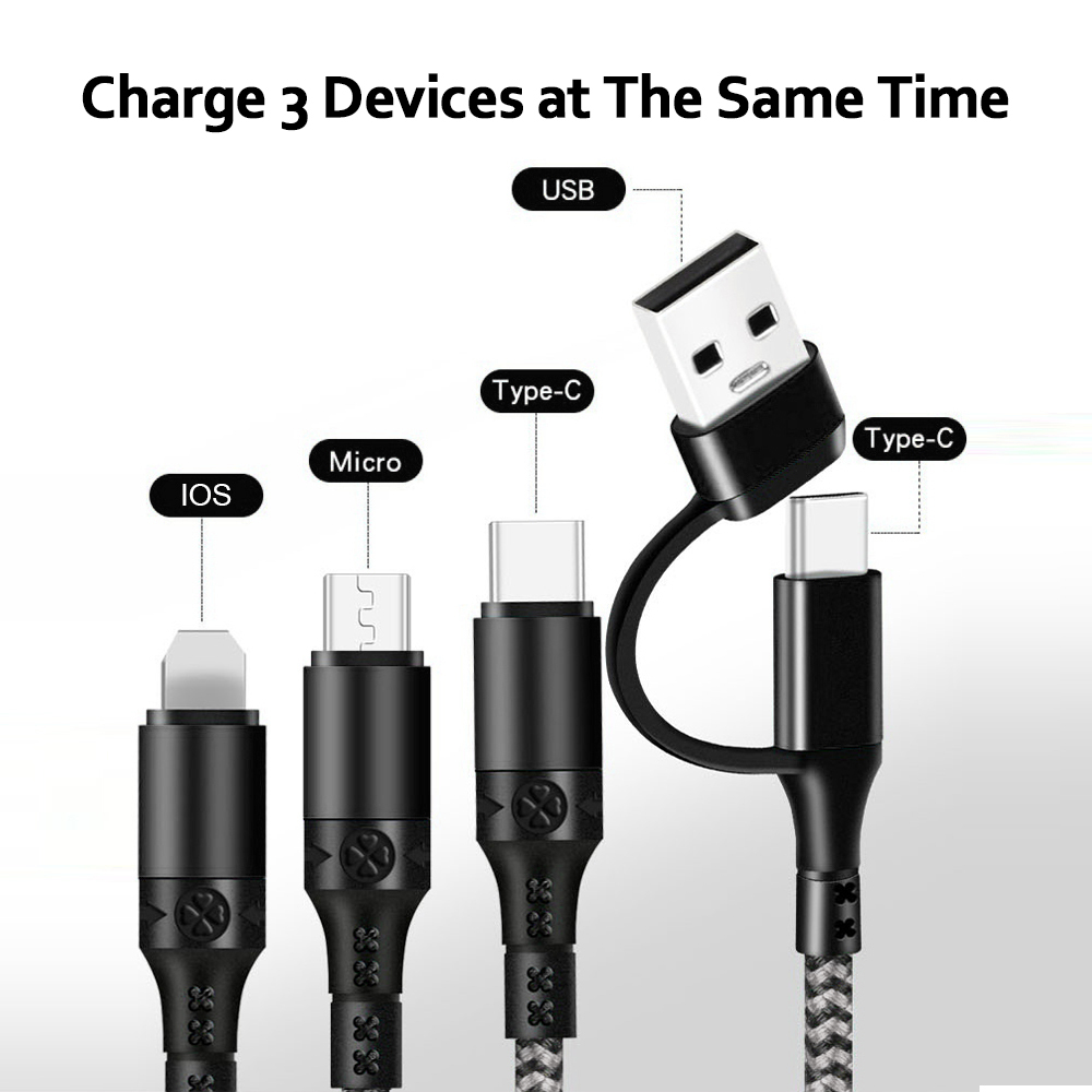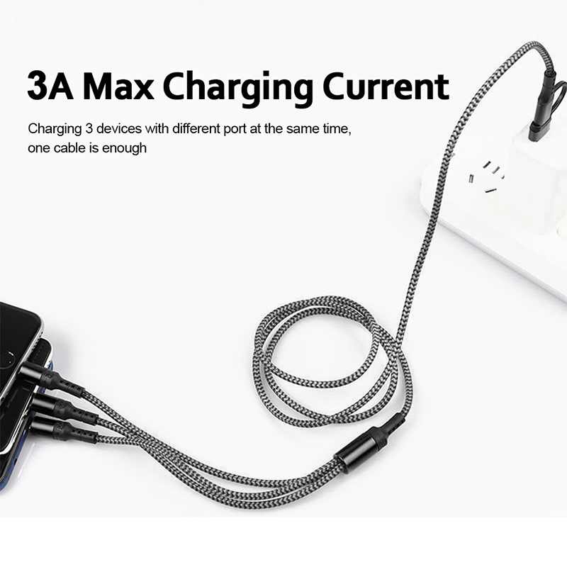 Fast Charging Cable 3 in 1 3A PD IOS USB Type-C Cable Mult Charging Cable for iPhone Samsung Huawei Xiaomi Android