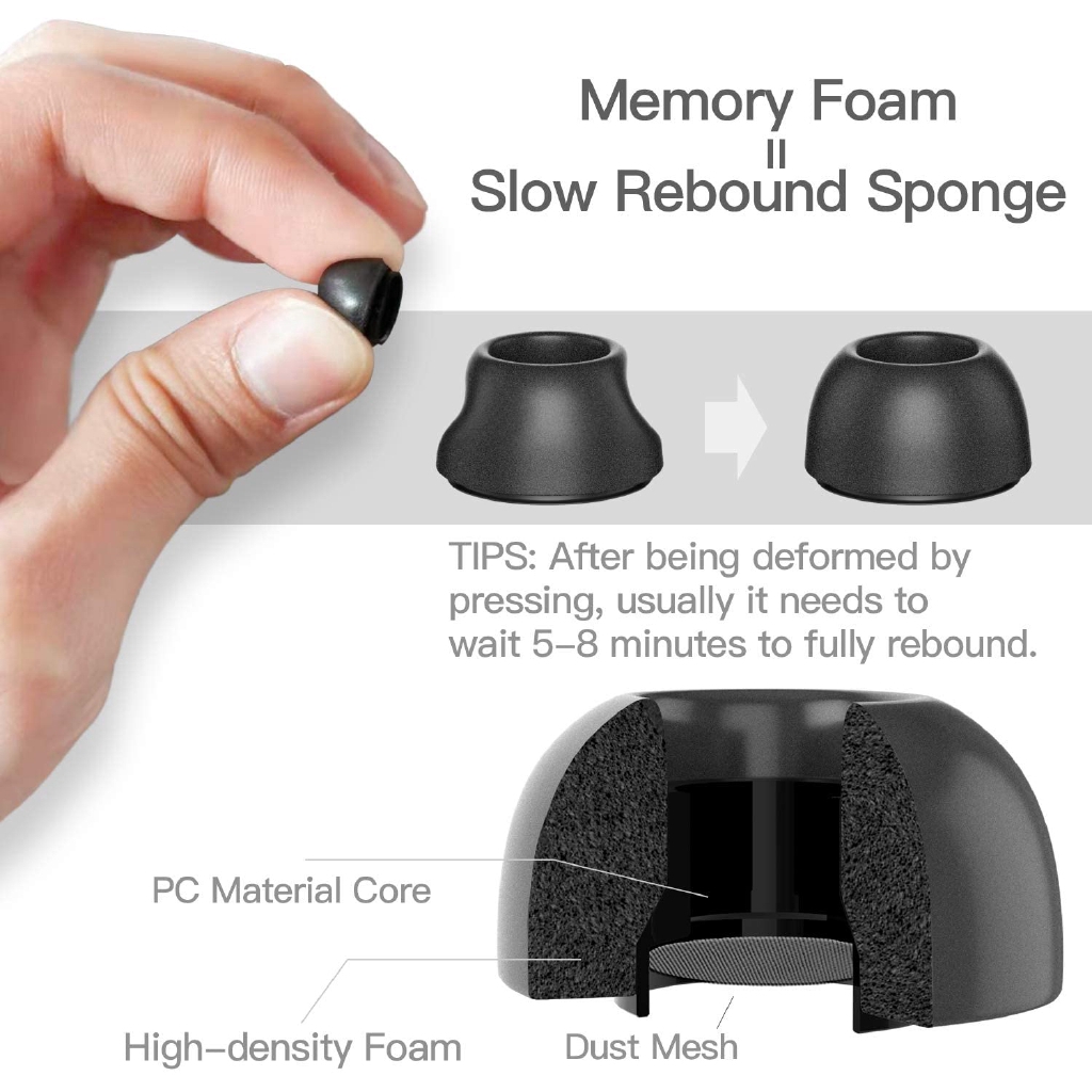 Note: large size ear tips must be compressed before inserting into case.