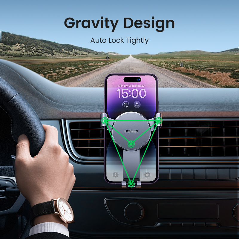 UGREEN Car Vent Phone Mount Gravity Phone Holder Hands-Free Car Air Vent Mount Auto Lock for iPhone 14 13 12 11 Pro Max Galaxy S22 S9 S10 Realme Vivo Phone Holder