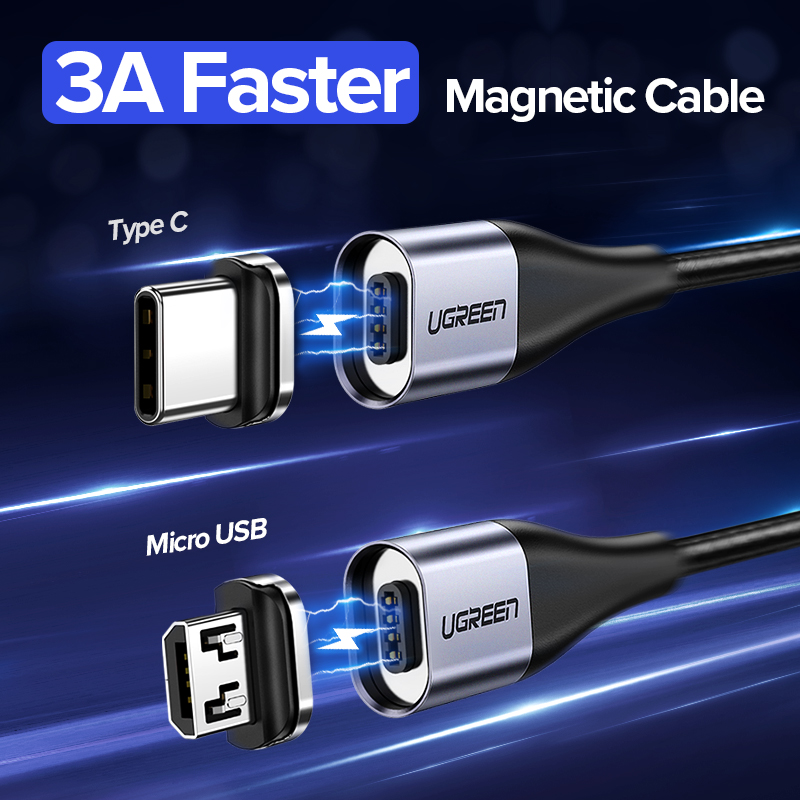UGREEN 1Meter QC3.0 Fast Charge Magnetic USB Cable Fast Micro USB Type C Cable Magnetic Charge Cable for VIVO Xiaomi LG Huawei Magnet Charger Micro USB Cable