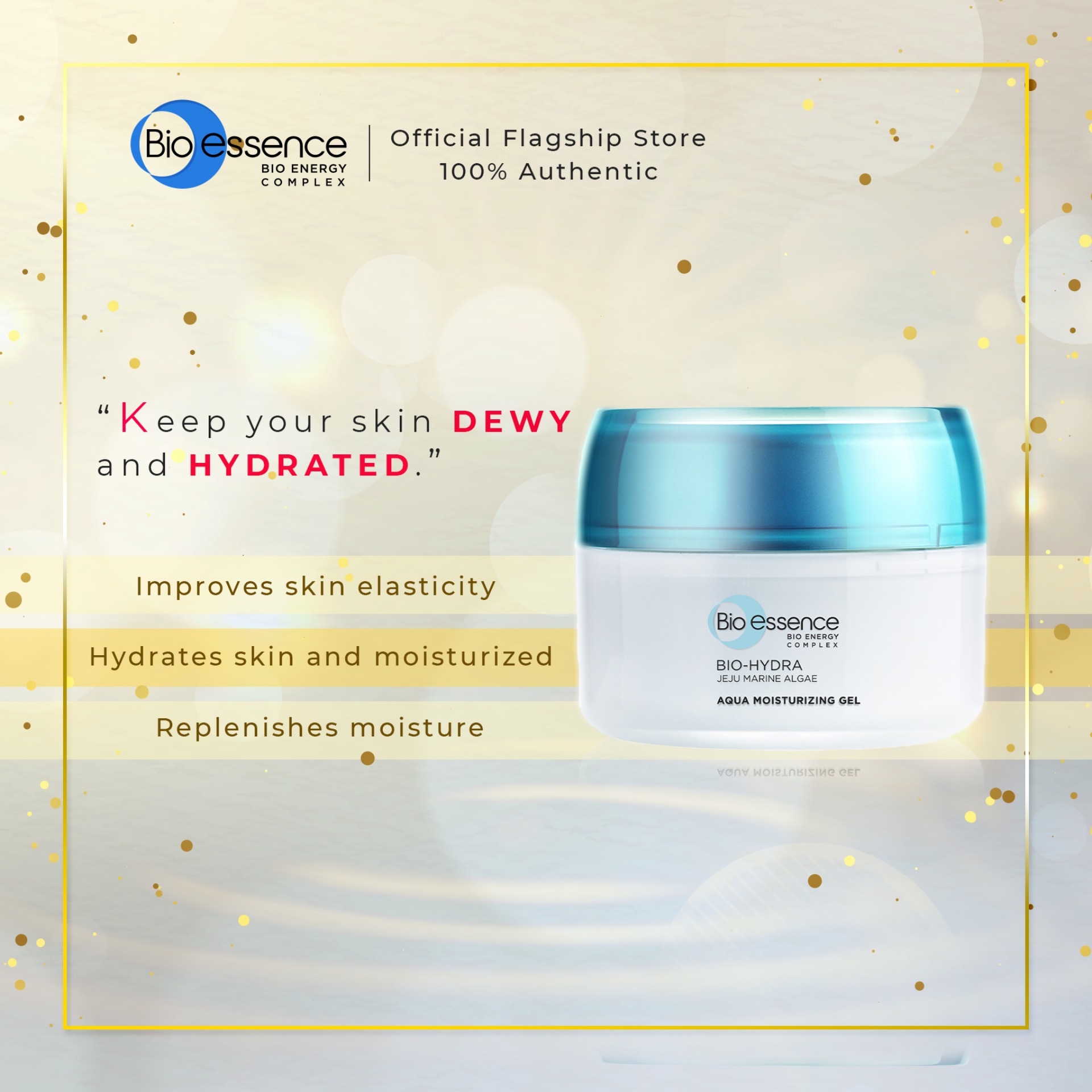 Free sample with every order Bio Essence Bio-Hydra Jeju Marine Algae Aqua Moisturizing Gel is infused with Bio Energy Complex which boosts the delivery of moisture to the skin to keep it dewy and hydrated. It is uniquely blended with three potent Jeju Marine Algae, which are easily absorbed into your skin to enrich and revitalize your skin with natural minerals and nutrients. It also contains Power Nano Hyaluronic Acid and Hyaluronic Acid to provide, absorb and lock in moisture, leaving your skin soft and supple. It controls oil secretion and nourishes skin with herbal nutrients to help improve overall skin condition with a lightweight and fast-absorbing formula.