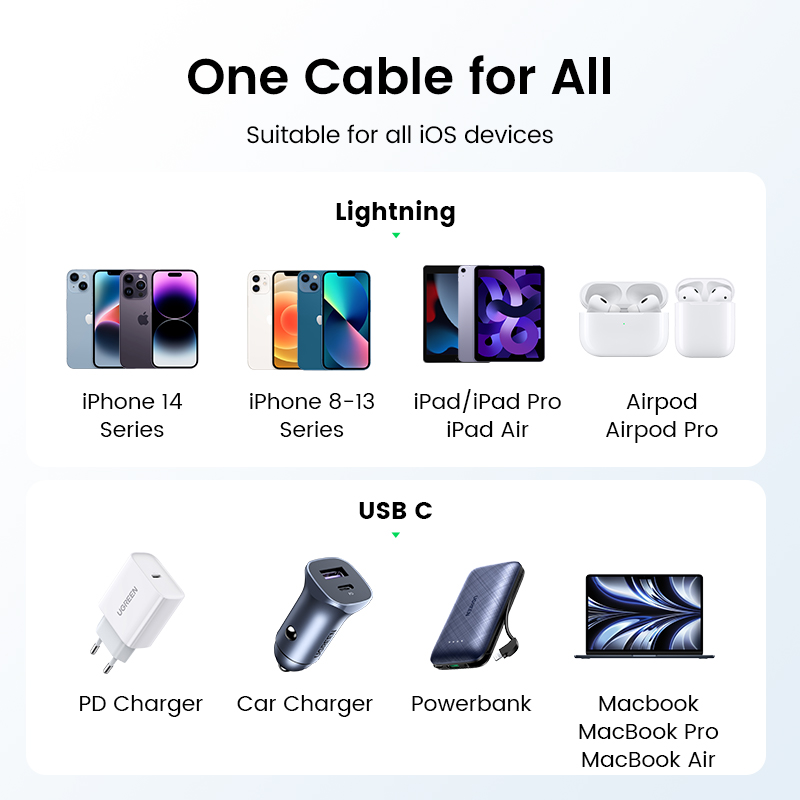 UGREEN PD 20W USB C to Lightning Cable - MFi Certified iPhone Charging Type-C Cable Compatible with iPhone iPhone 14 13 Pro Max iPhone 14 Plus iPhone 12 11 Pro Max /X/XR/XS/8 Series, iPad 9, AirPods P
