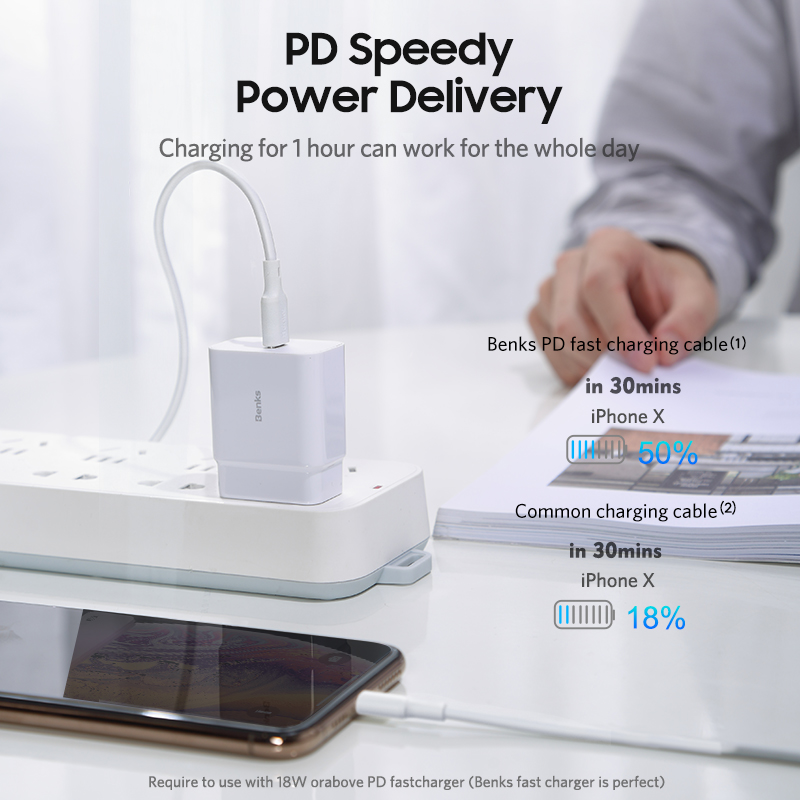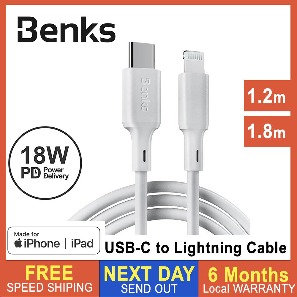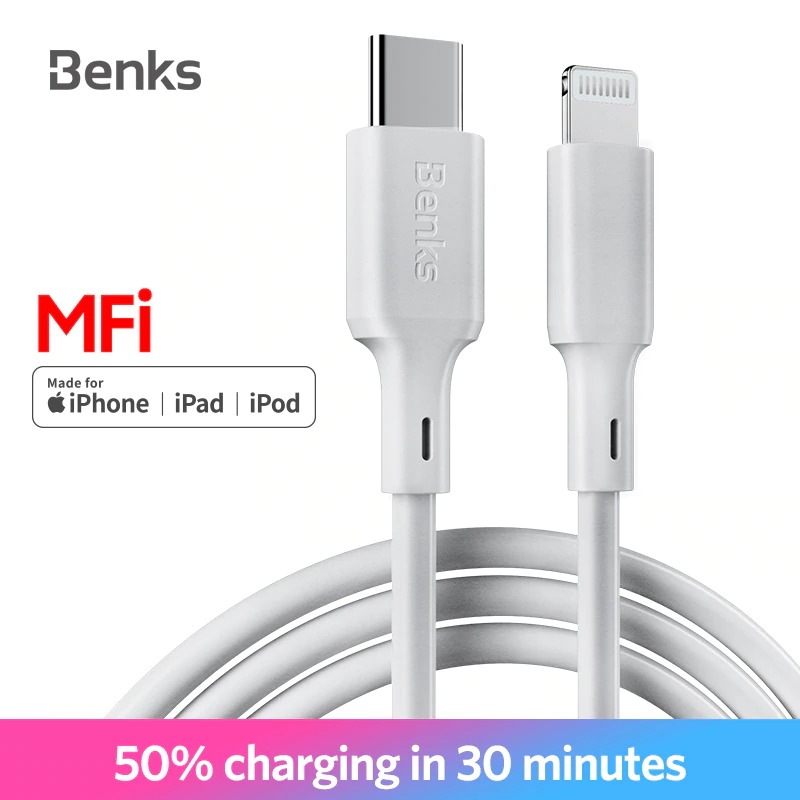 Benks USB C to Lightning Cable MFI, 18W USB-C Type C Original C94 Chip MFi Certified Supports Data Sync and Fast Charging PD Power Delivery Type-C Cable White Compatible for iPhone iPad Macbook [Local