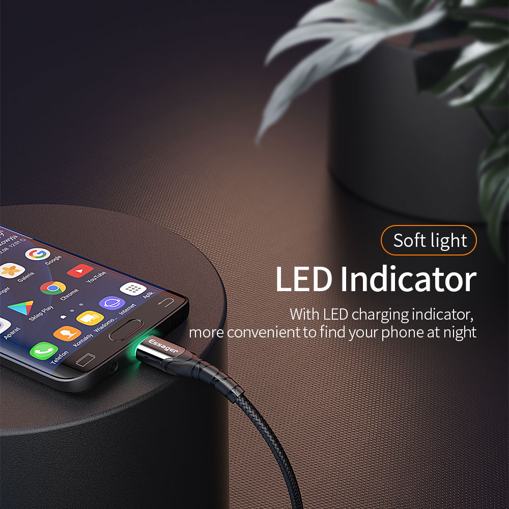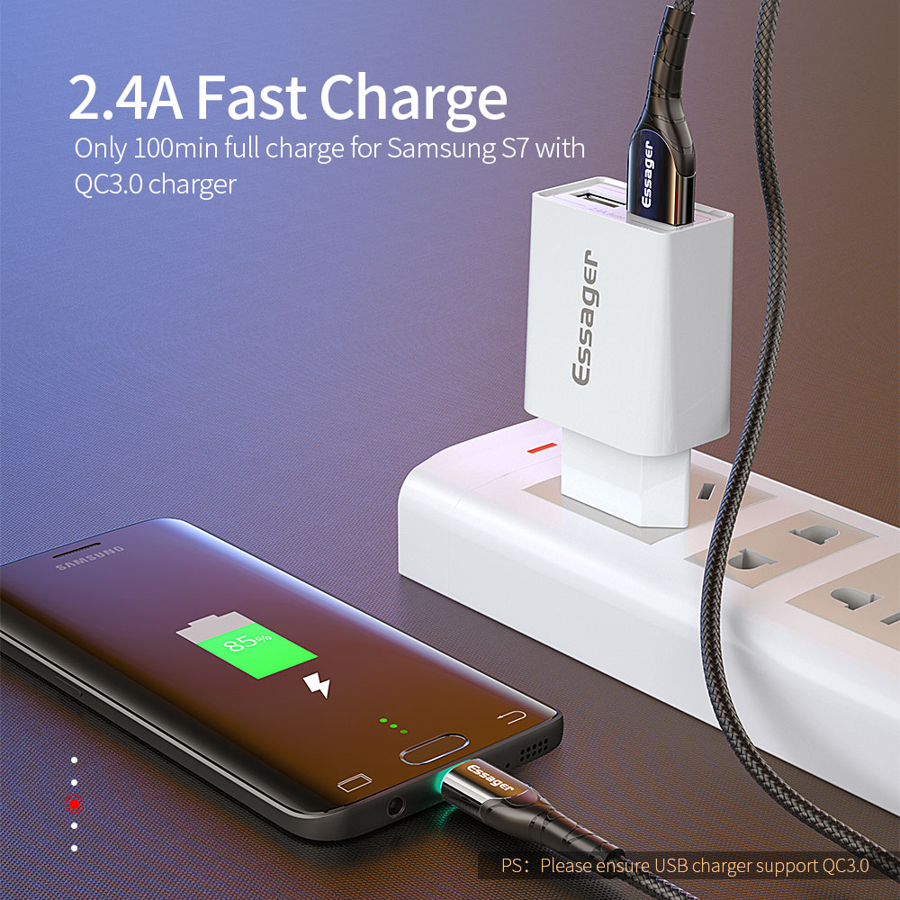 Essager 0.5m/1m/2m/3m LED Micro USB Cable 2.4A Fast Charging Charger Microusb Data Cable For Samsung Xiaomi Android Phone Cable