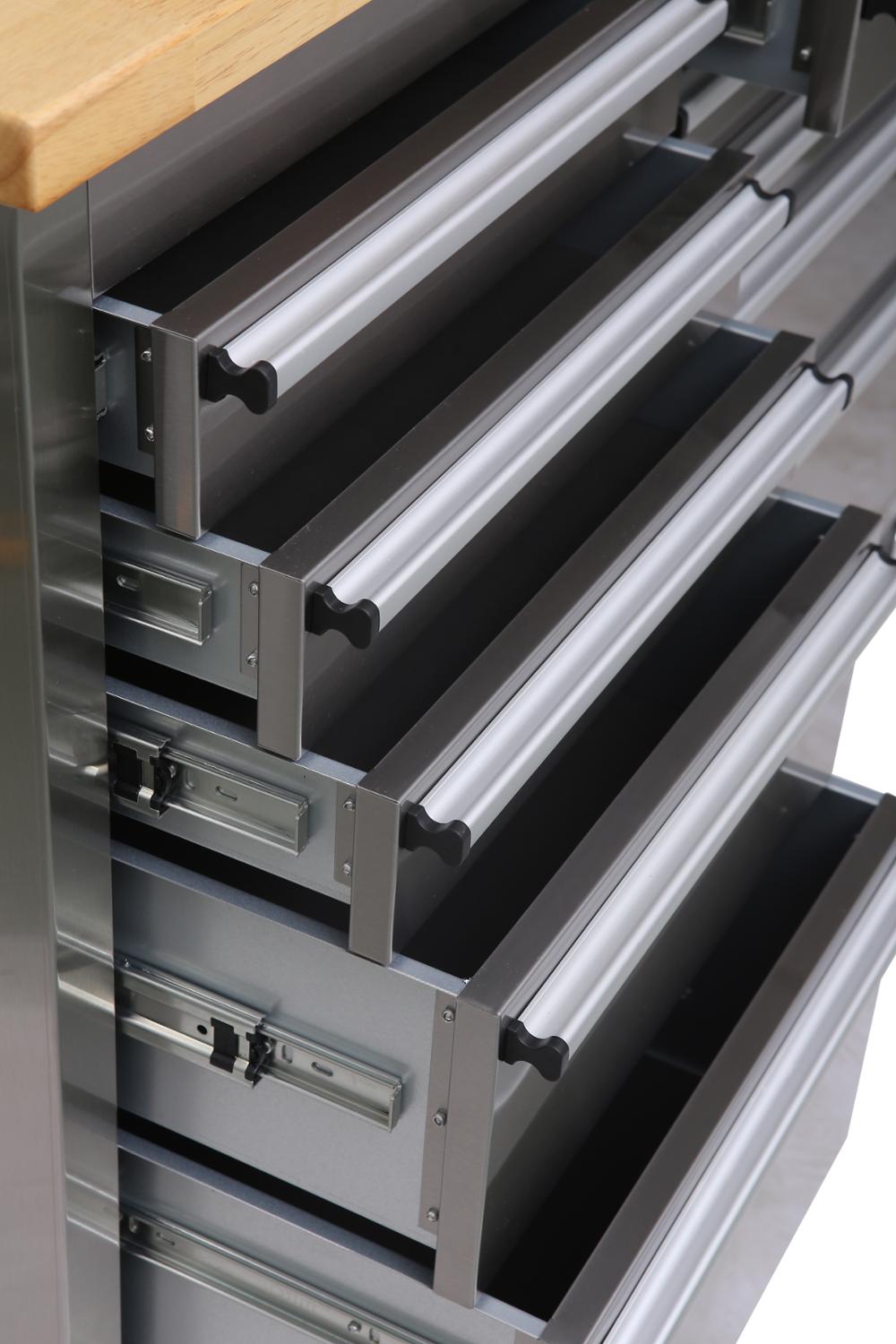Our Tool Chest and Cabinet Combination can increase the storage space of your kitchen or garage work station. With high end finish and the durability of stainless steel, the tool cabinet will help to keep your space organized. Our Tool Chest can offer you: