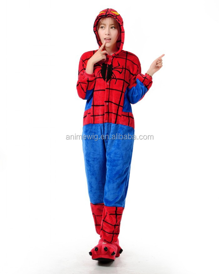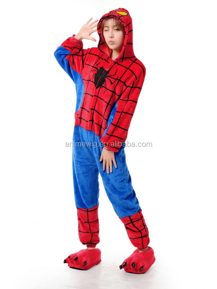 Wholesale Kartoon Flannel Unisex Adult Spider Man Sleepwear Animal Onesie Cosplay Halloween Costume Pajamas Costume