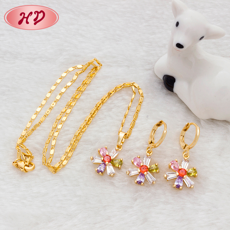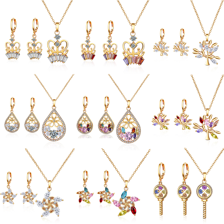 | Product Name | Colorful dubai cheap bridal 18k gold plated zircon necklace and earrings jewelry set |