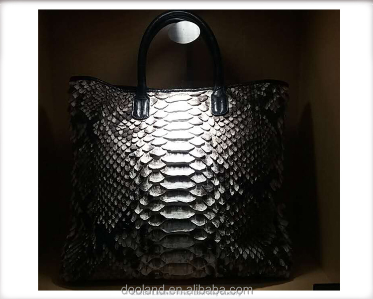 Luxury large size quality exotic crocodile belly trimmed real python skin leather tote bag handbag