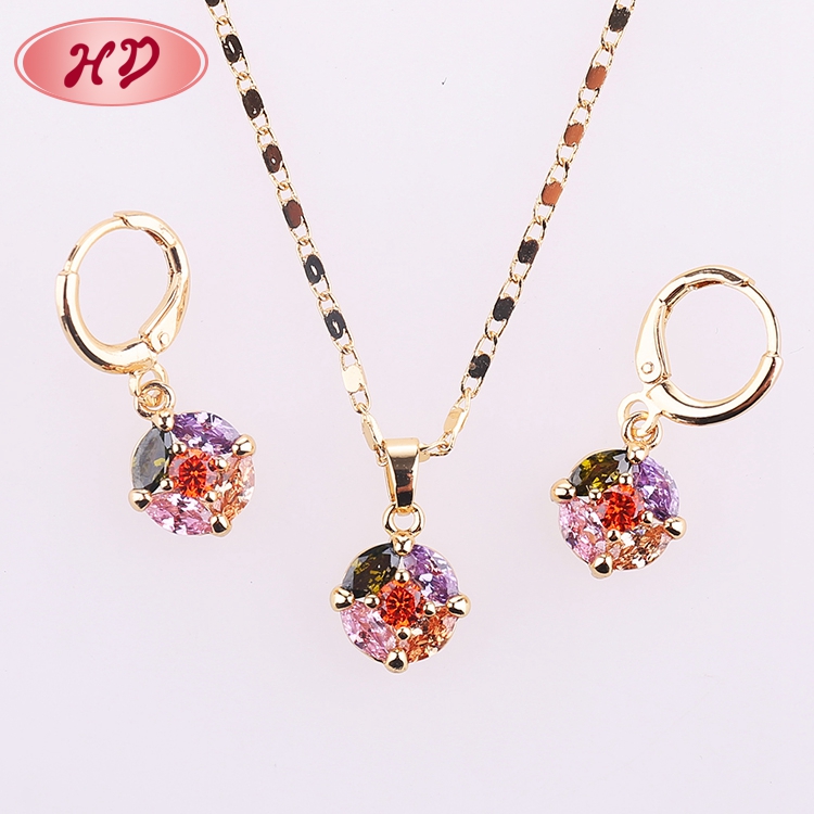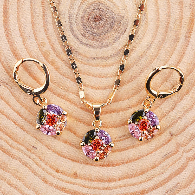 | Product Name | 18k gold plated zircon necklace and earrings jewelry set |