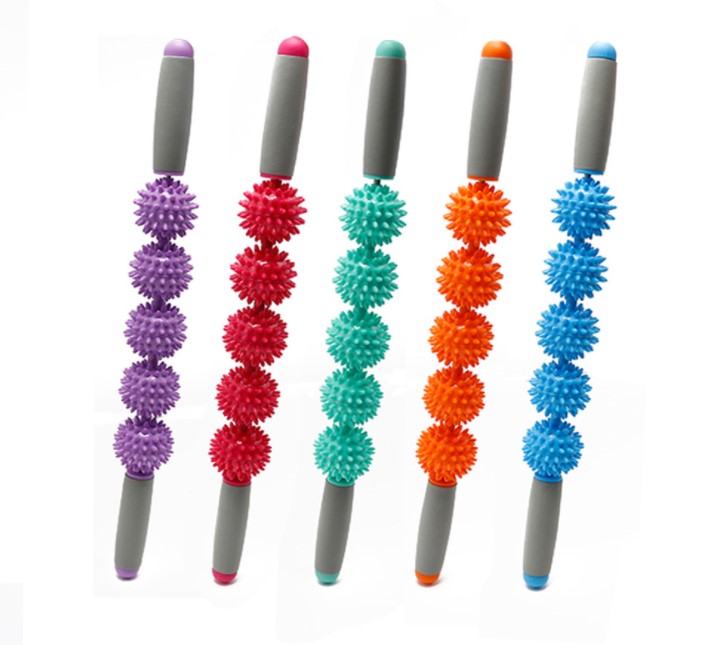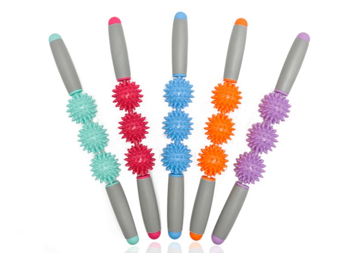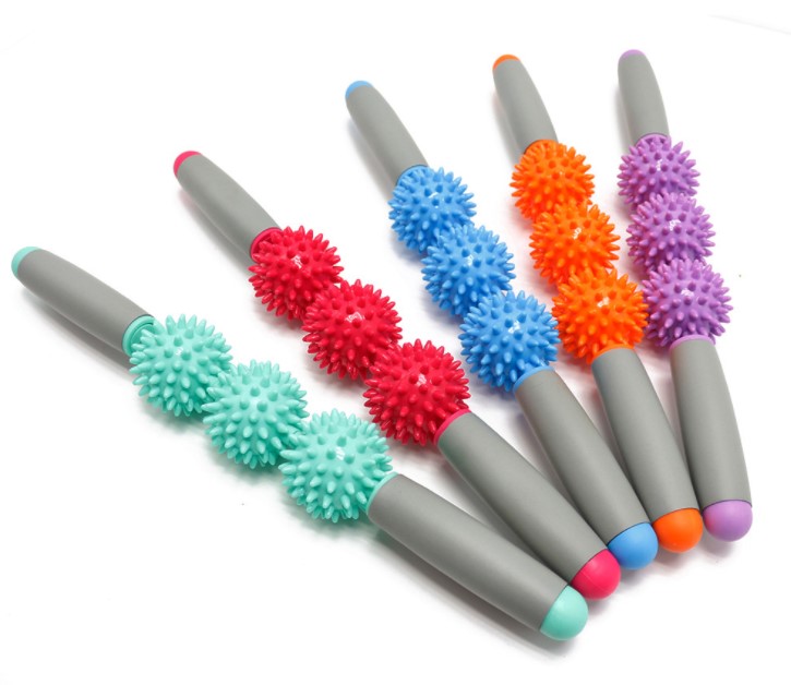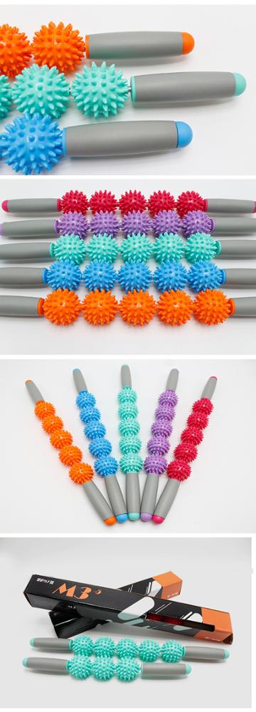 Name: Spike Massager Material: pvc ball / pp handle / stainless steel Specifications: three balls / five goals Color: Purple / Blue / Rose / Mint Green